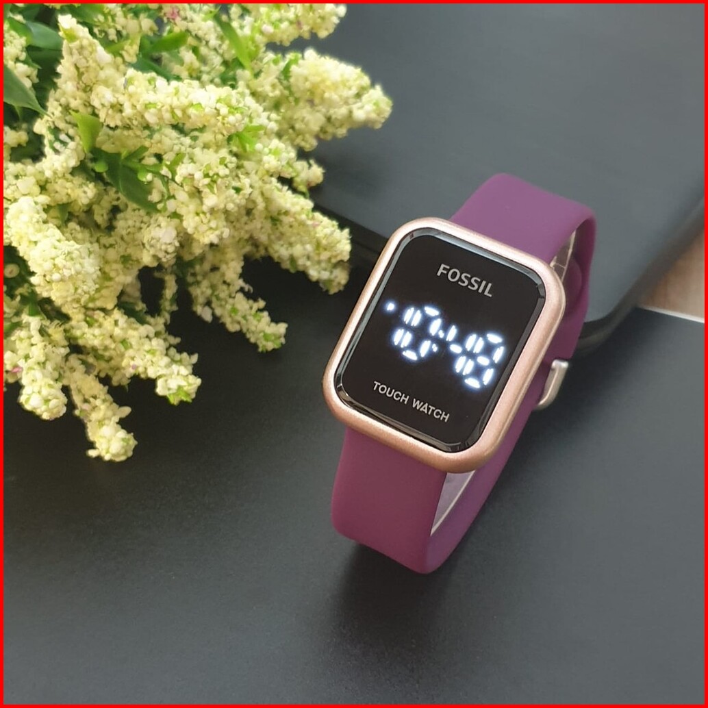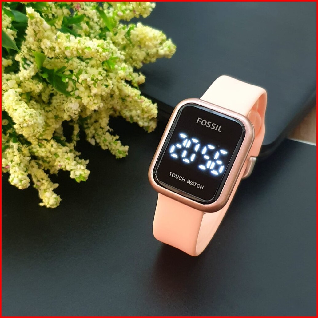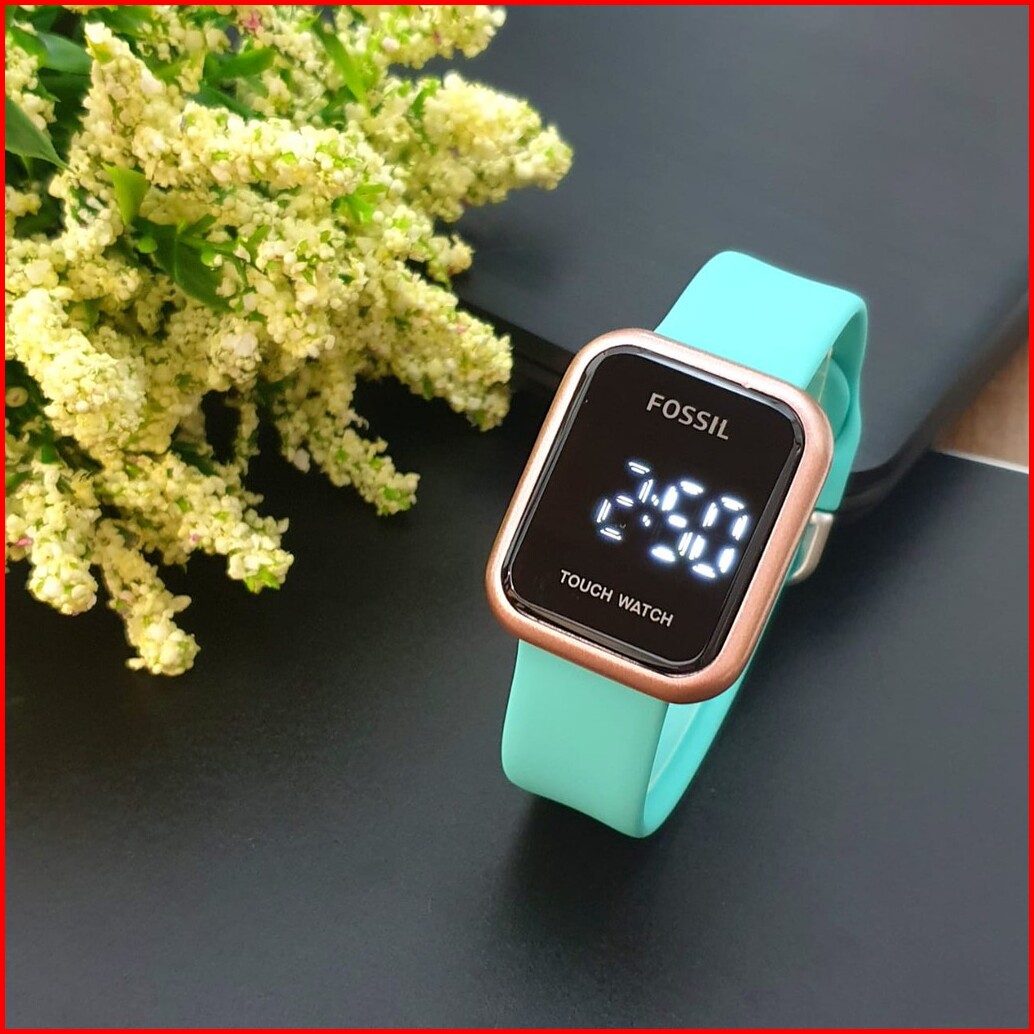 Jam Tangan Wanita Fosol Touch Screen Body Segi Rose Tali Rubber Tanggal Aktif
