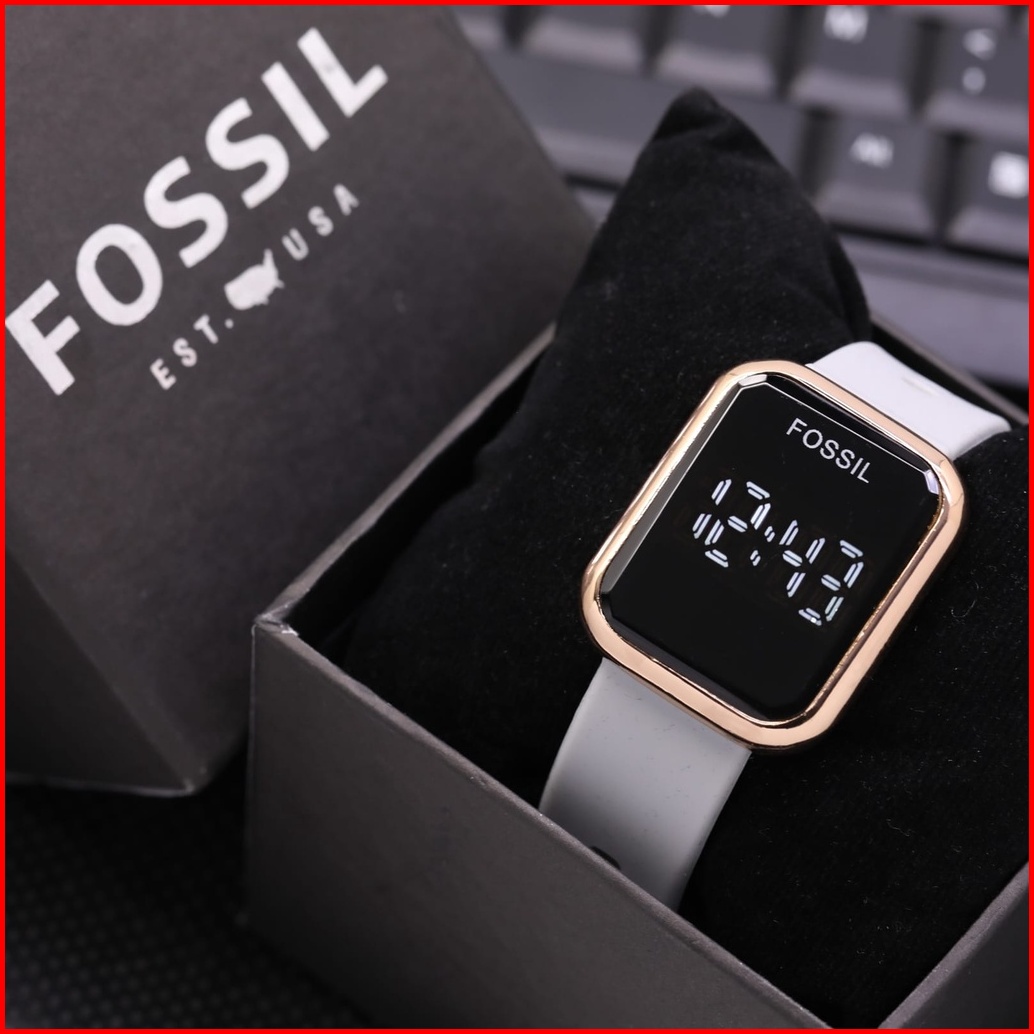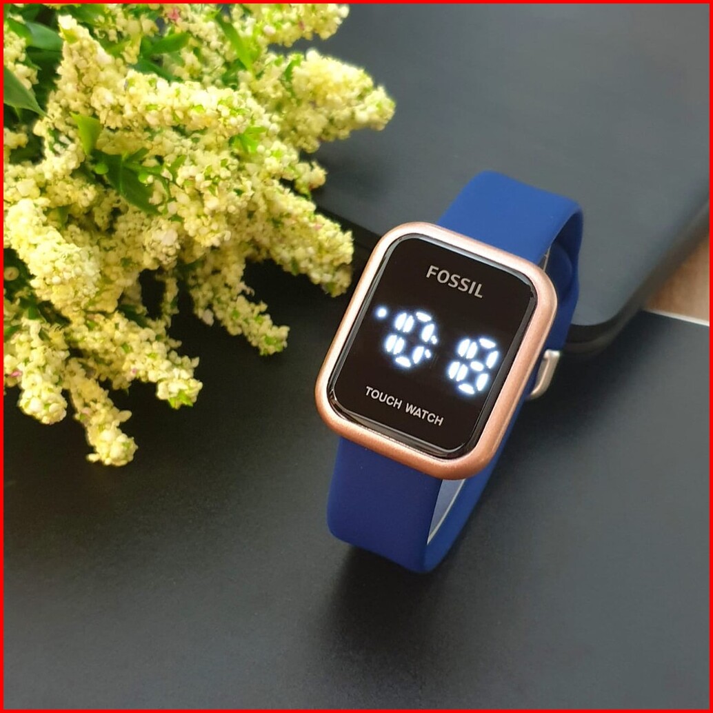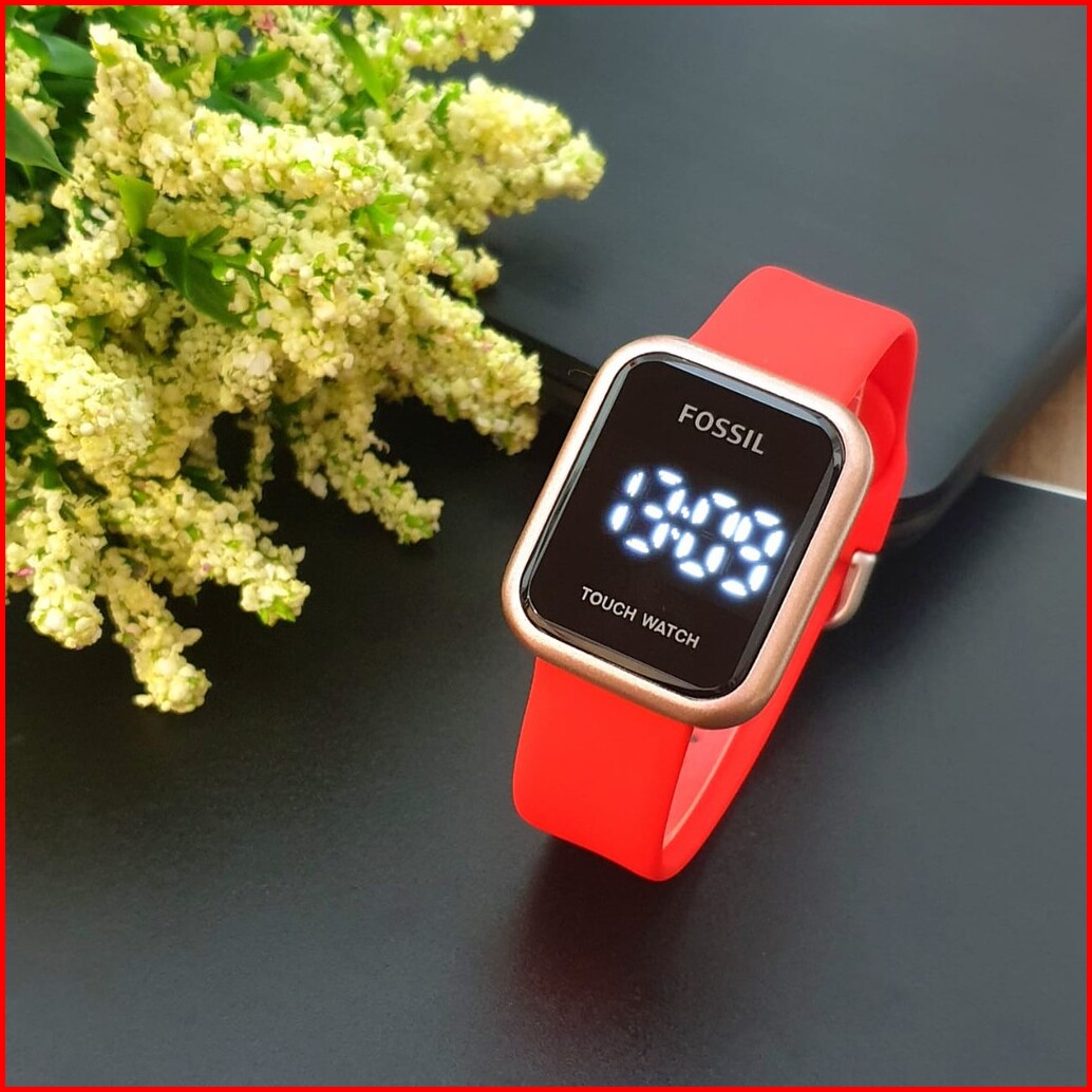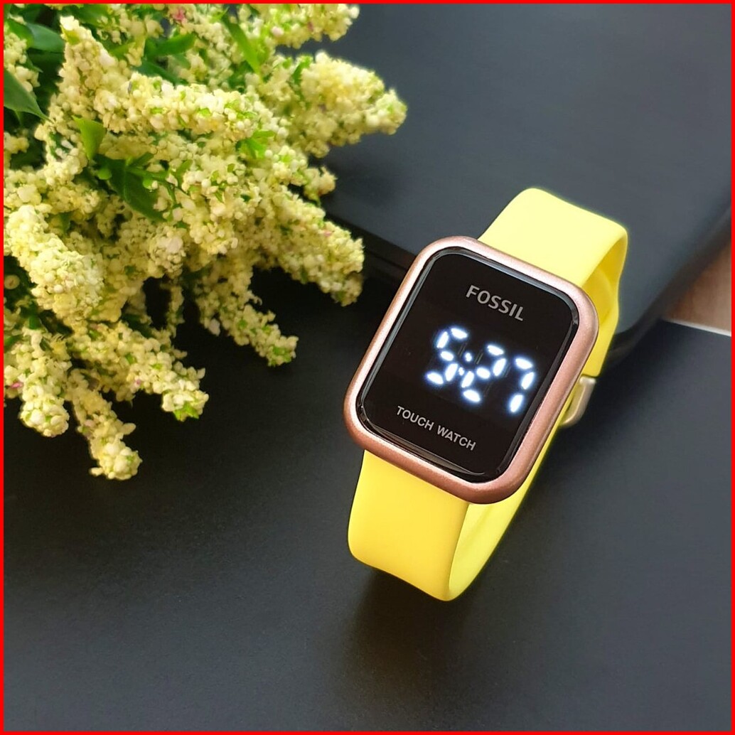 Jam Tangan Wanita Fosol Touch Screen Body Segi Rose Tali Rubber Tanggal Aktif