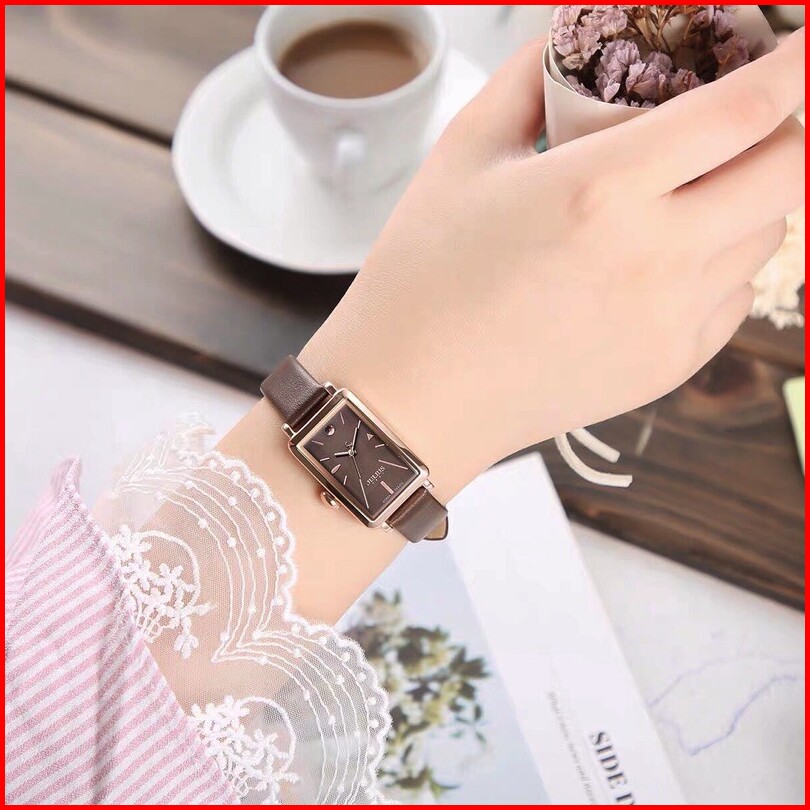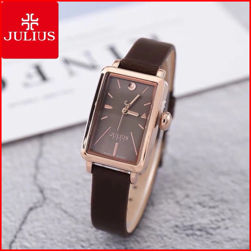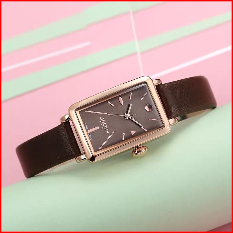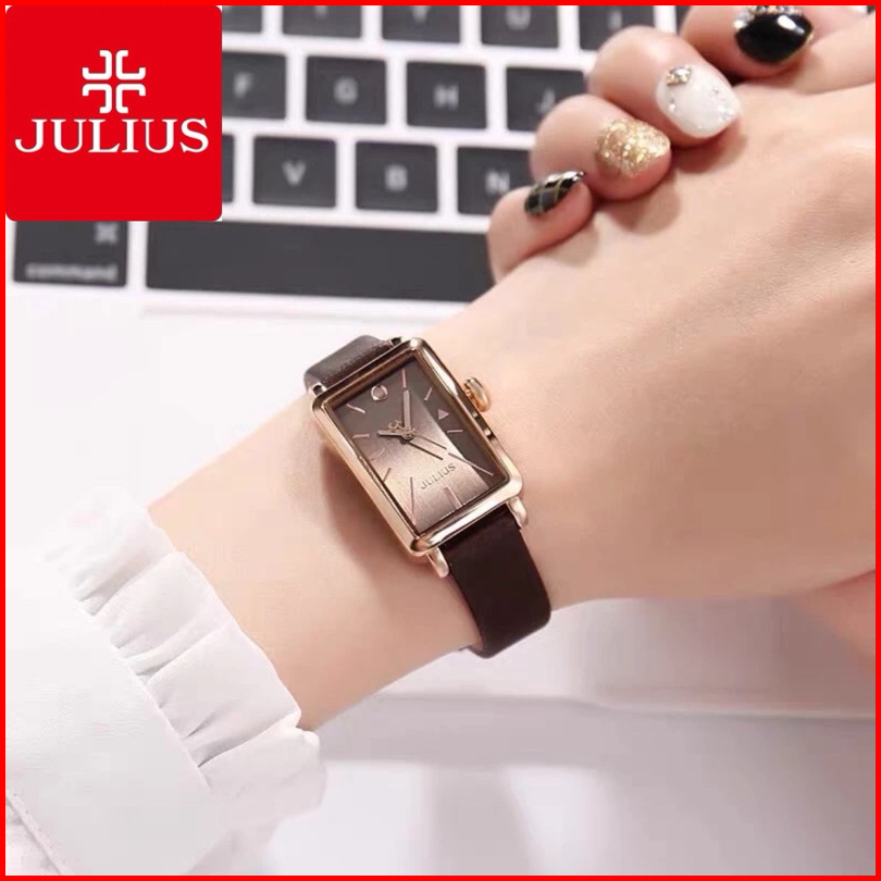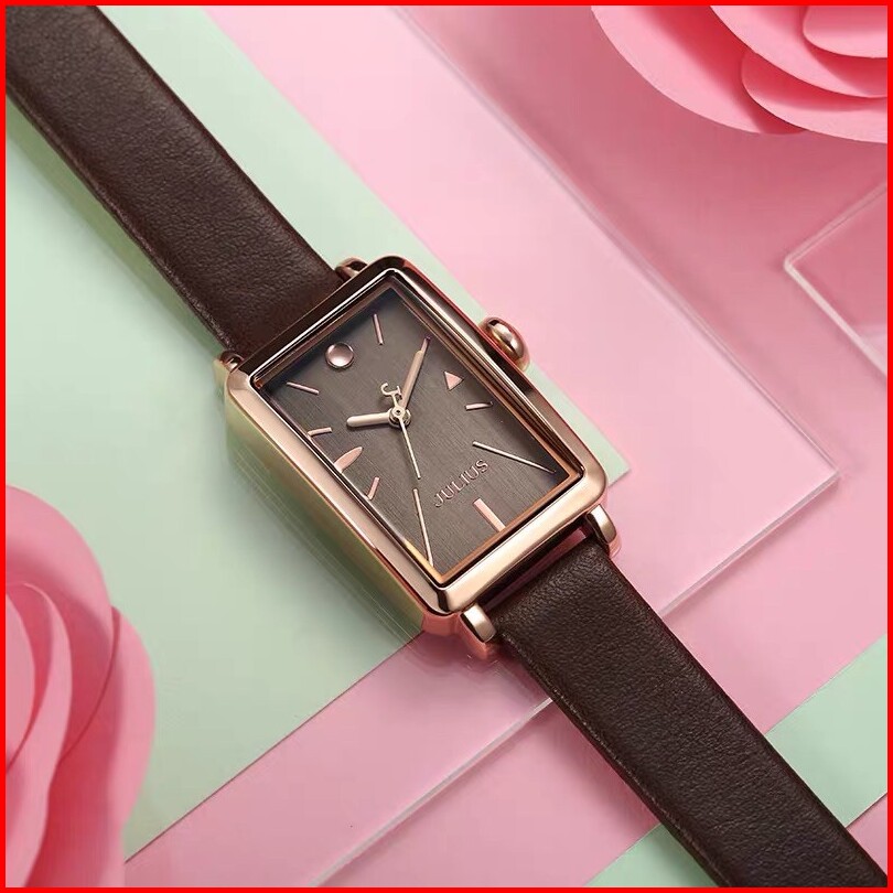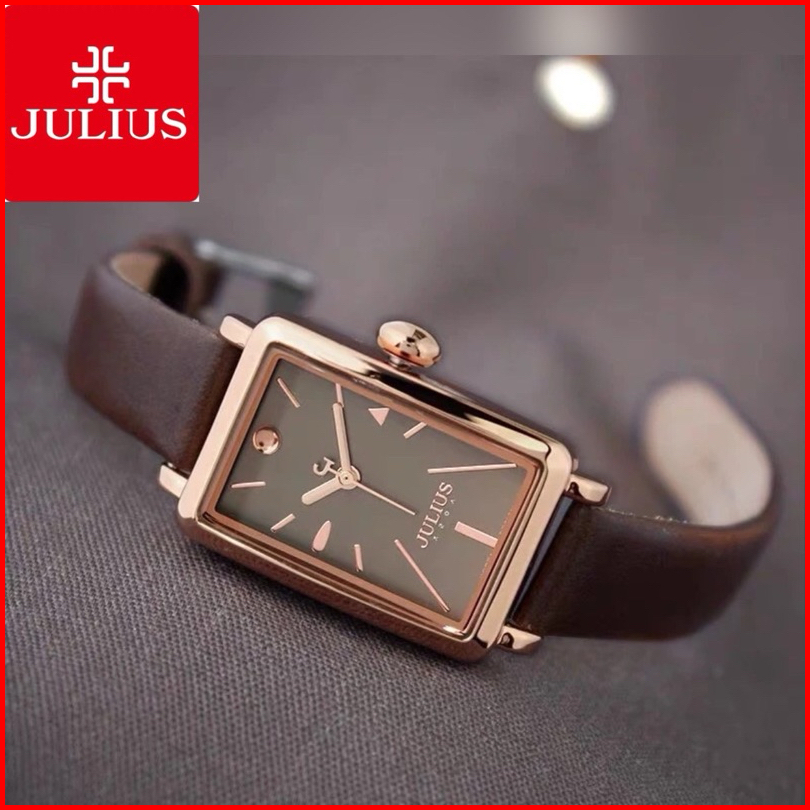 Jam Tangan Julius Wanita Original Korea Kotak Quartz Kulit Ja-941