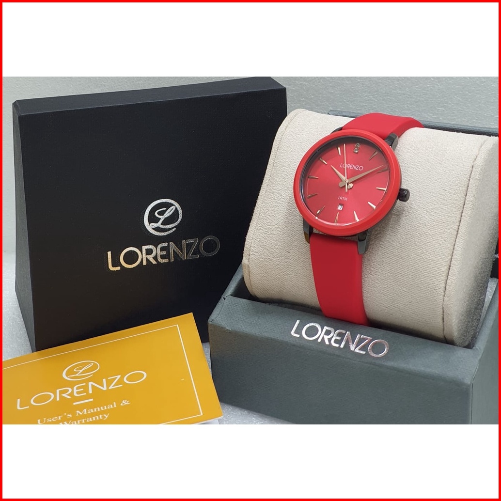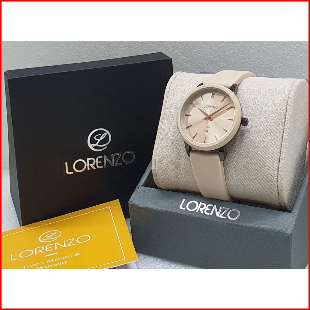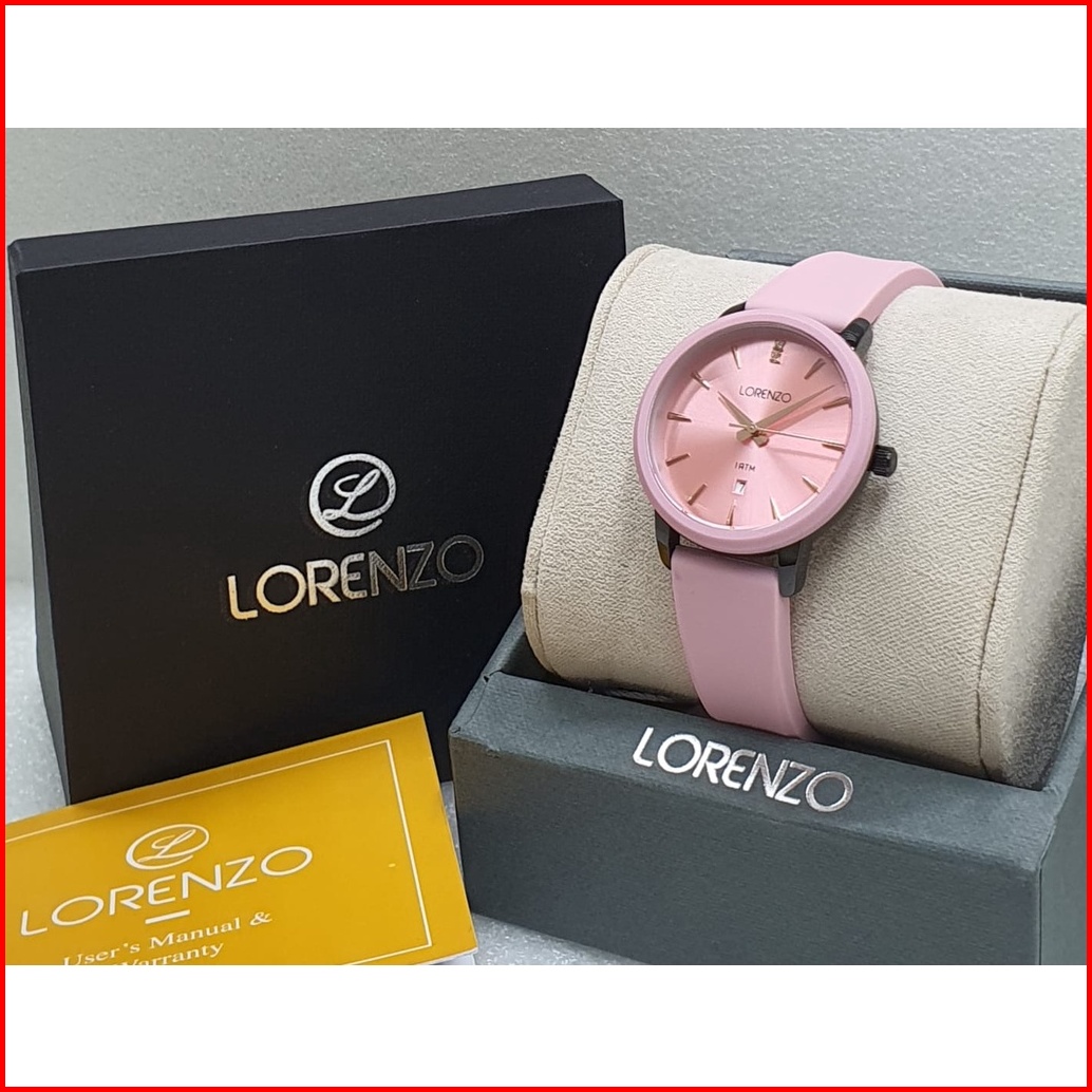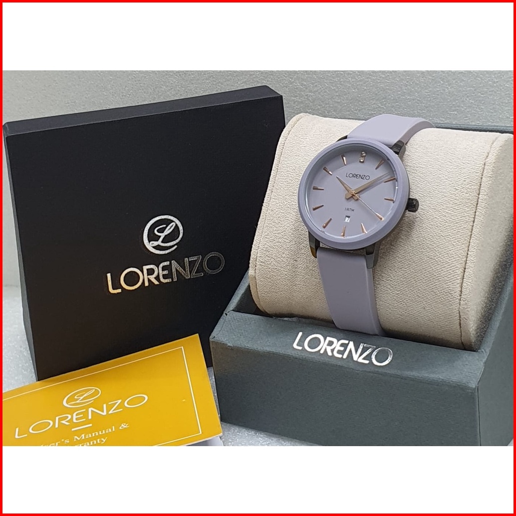 Jam Tangan Wanita Lorenzo-7127 Original Tali Rubber Body Bulat Tanggal Aktif Box Exclusive