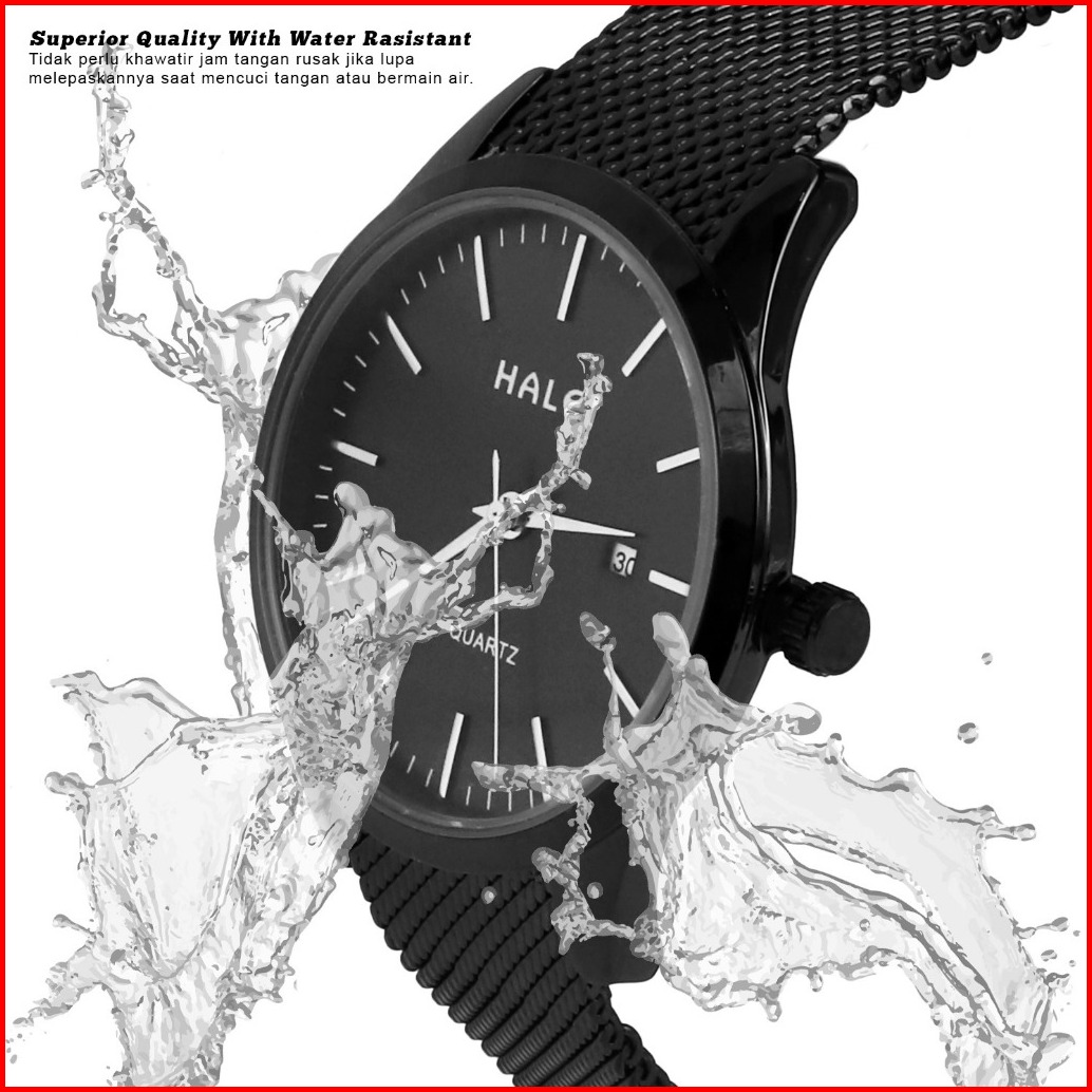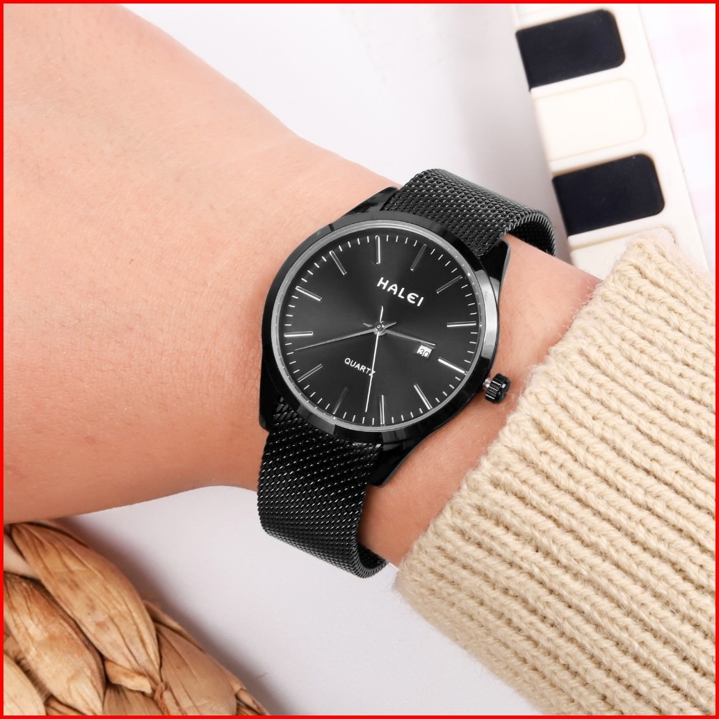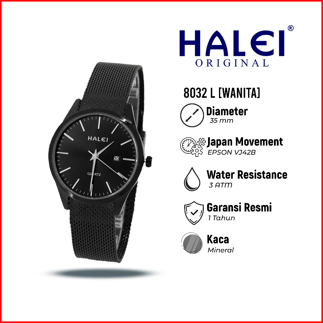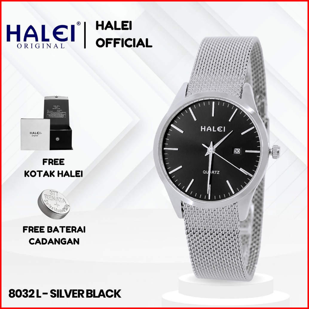 Halei 8032 L Jam Tangan Wanita Halei Original Anti Air Rantai Pasir Stainless Back Tanggal Analog