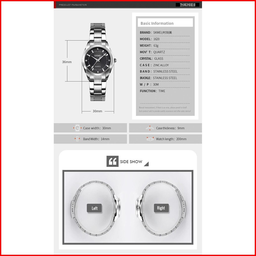 Jam Tangan Wanita Skmei 1620 Women Analog Jam Tangan Stainless Steel Skmei