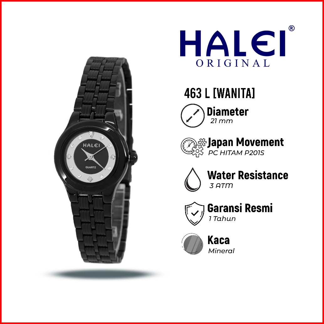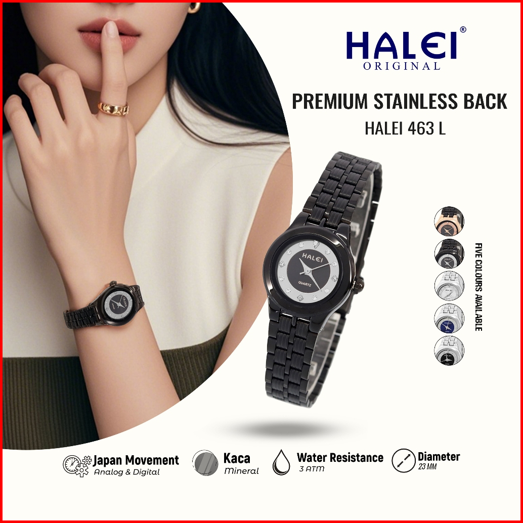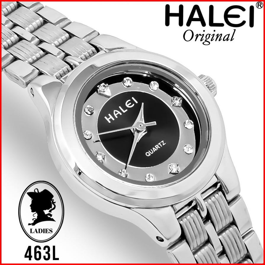 Halei 463 L Jam Tangan Wanita Halei Original Fashion Anti Air Rantai Stainless Back Analog Kekinian