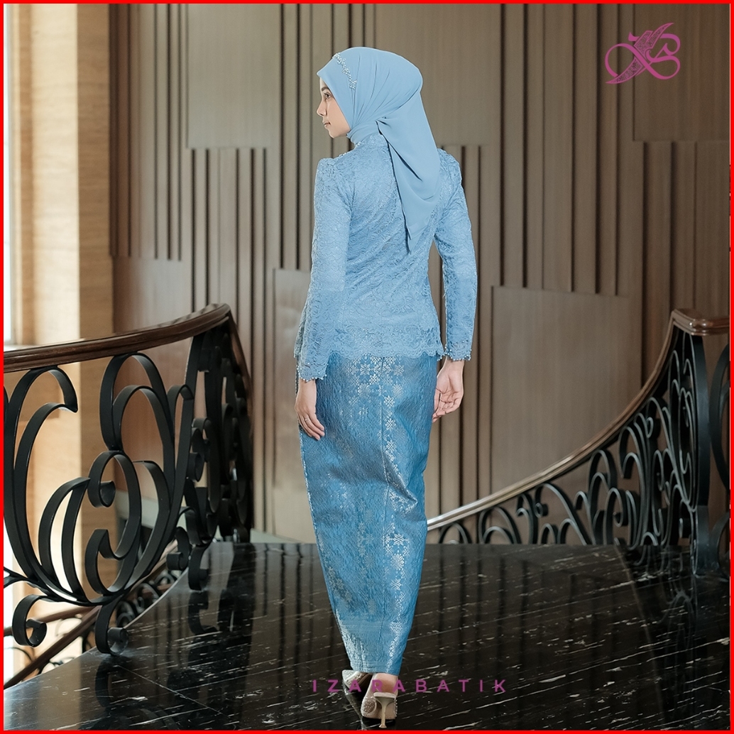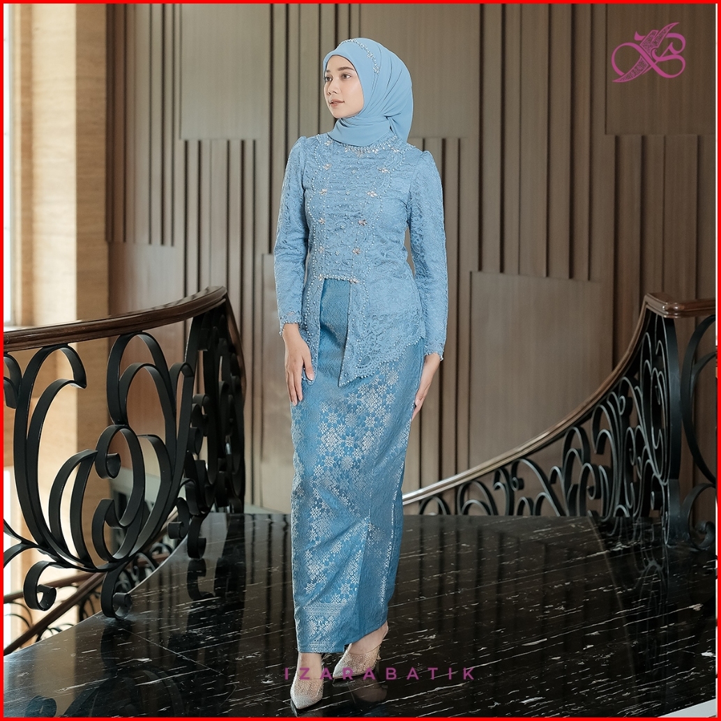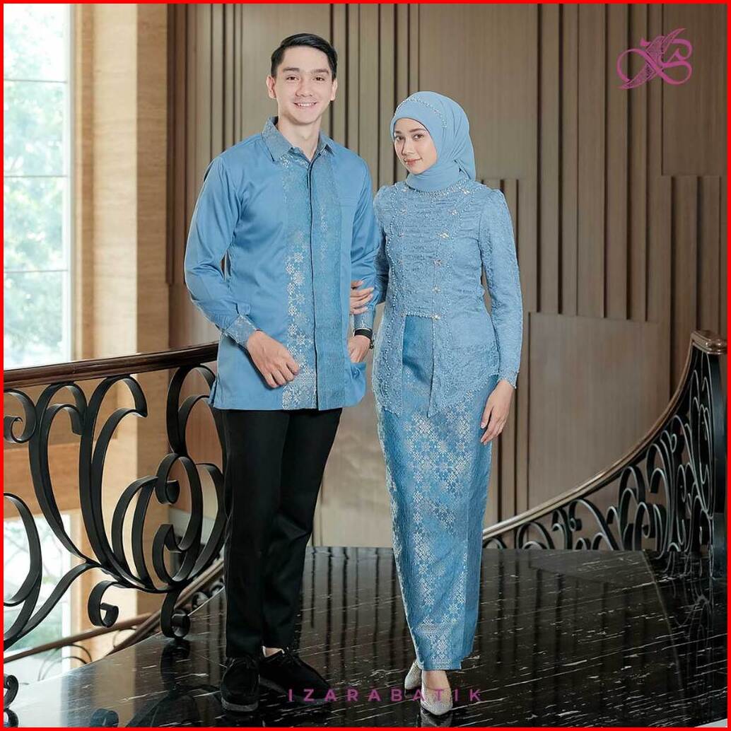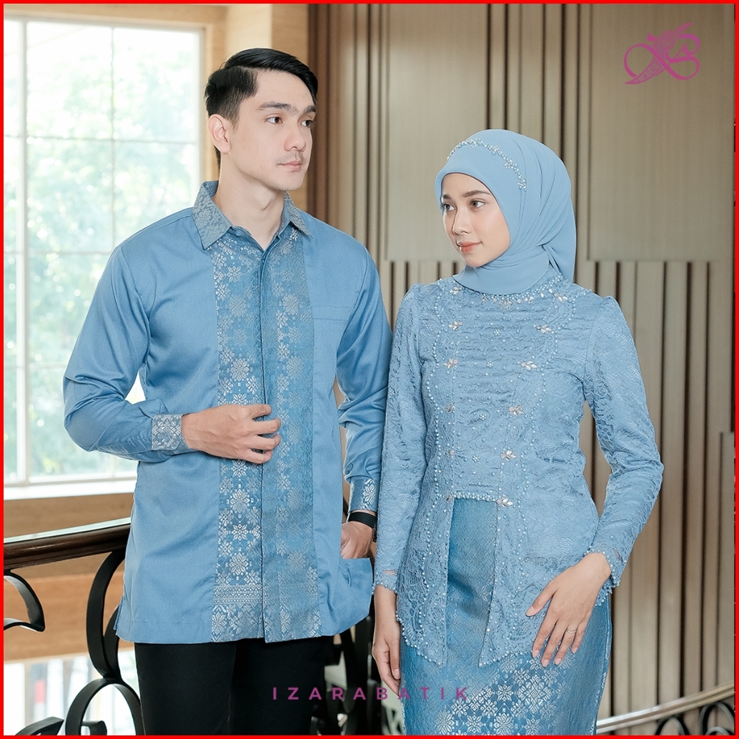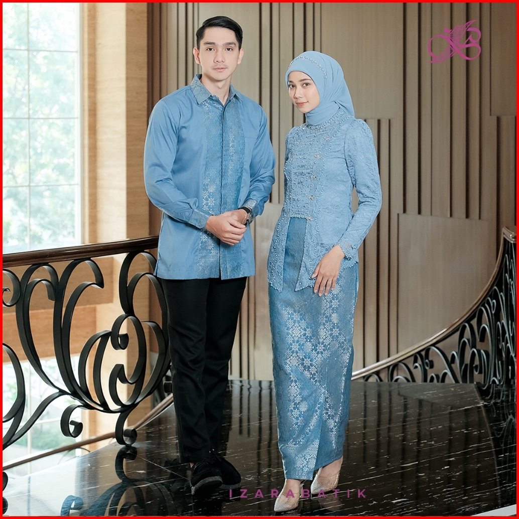 Izarabatik - Kutubaru Rastri Denim Set Kebaya Batik Modern Couple Wisuda Lamaran Full Payet Tunangan Kondangan Bridesmai