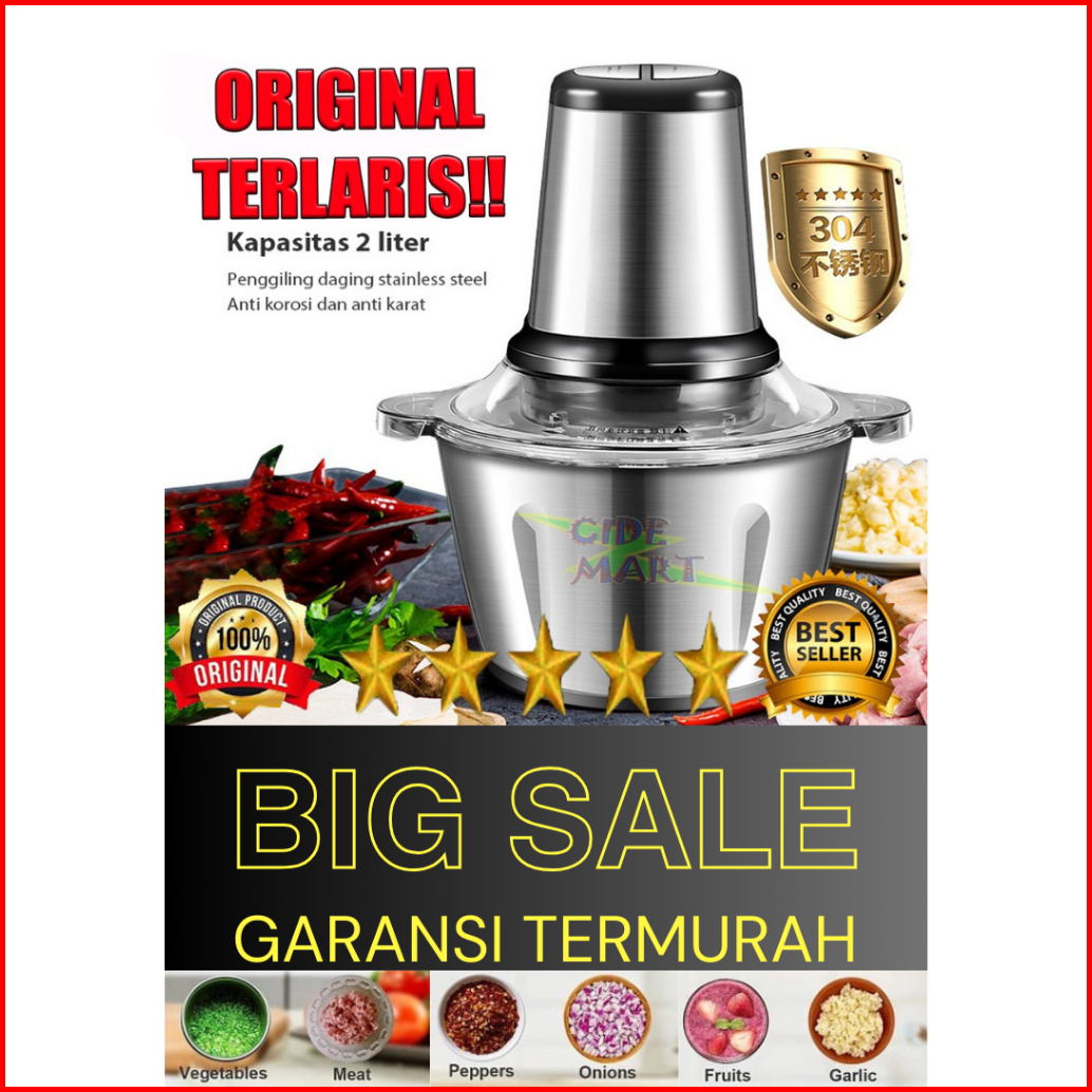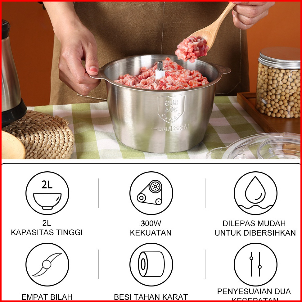 Lapak Ane - Pb02 Blender Chopper Stainless 2l Penggiling Daging Elektrik Multifungsi Penggiling Mixer Fruit Vegg Baru