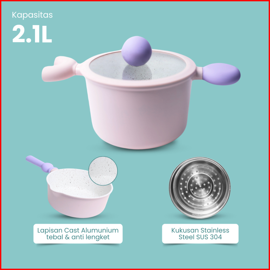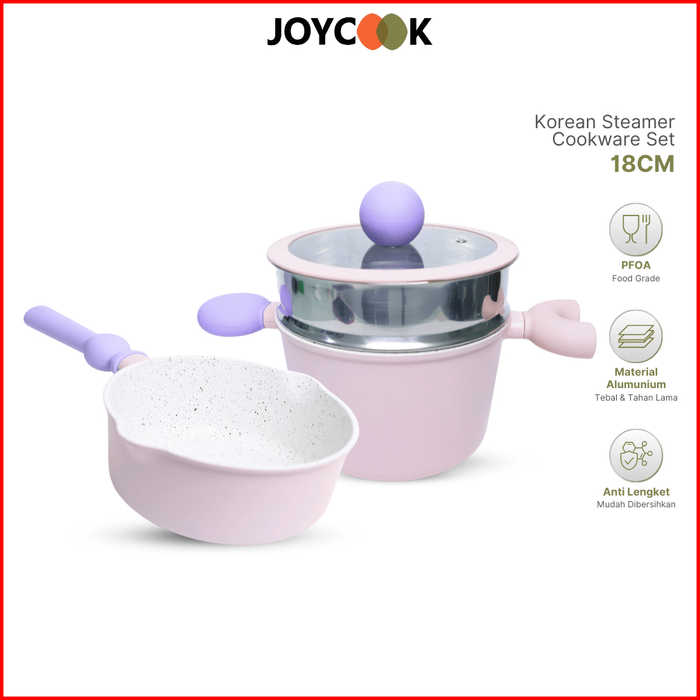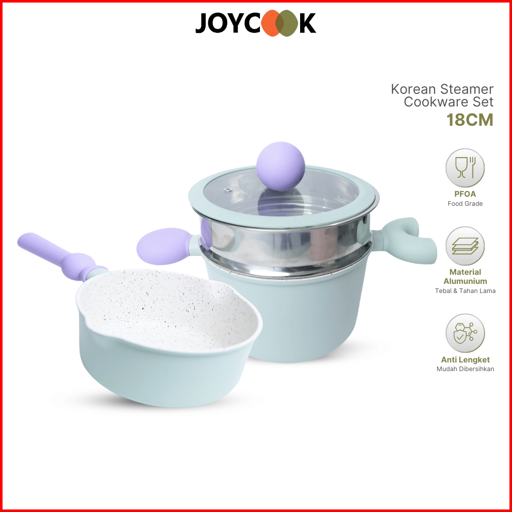 Joycook X Funnycook Korean Steamer Pan Panci Susu Kukus Set Kukusan Anti Lengket Pegangan Karet Tahan Panas