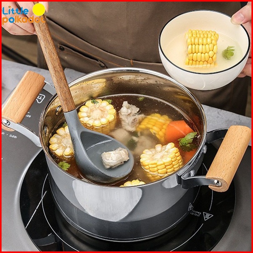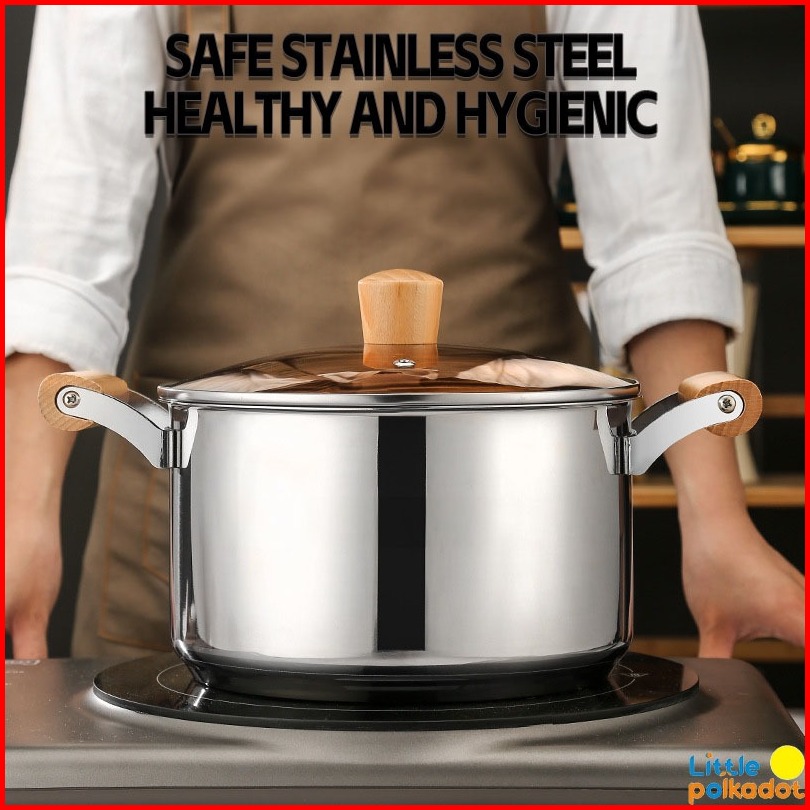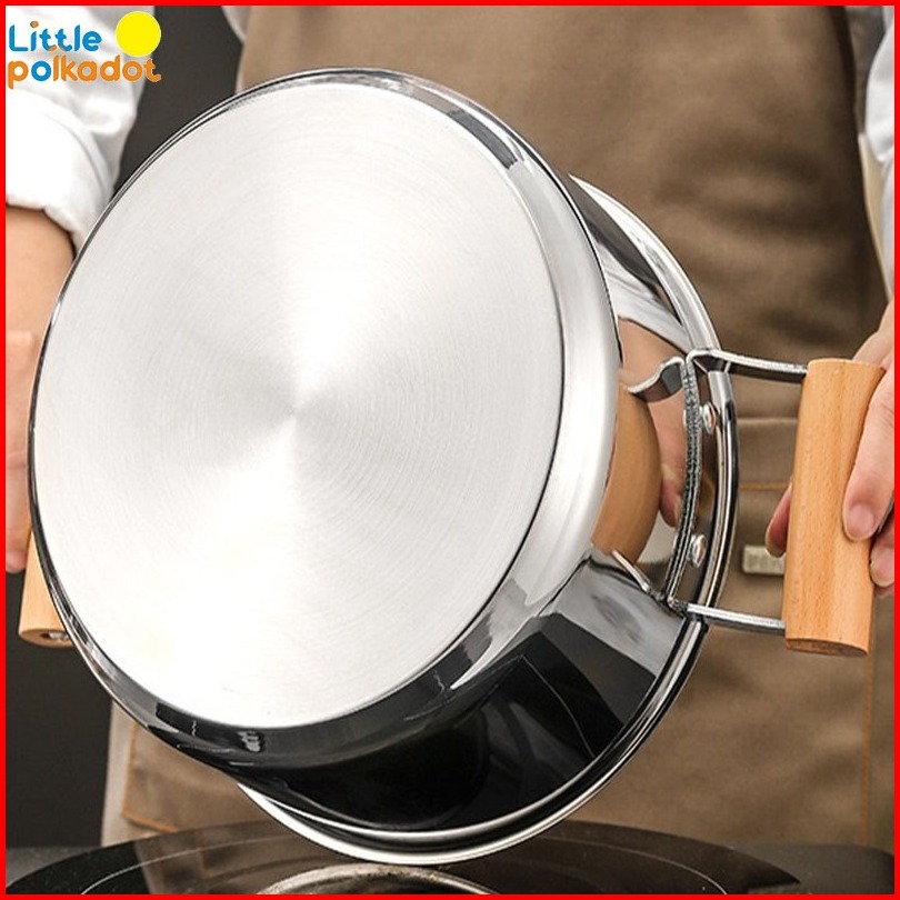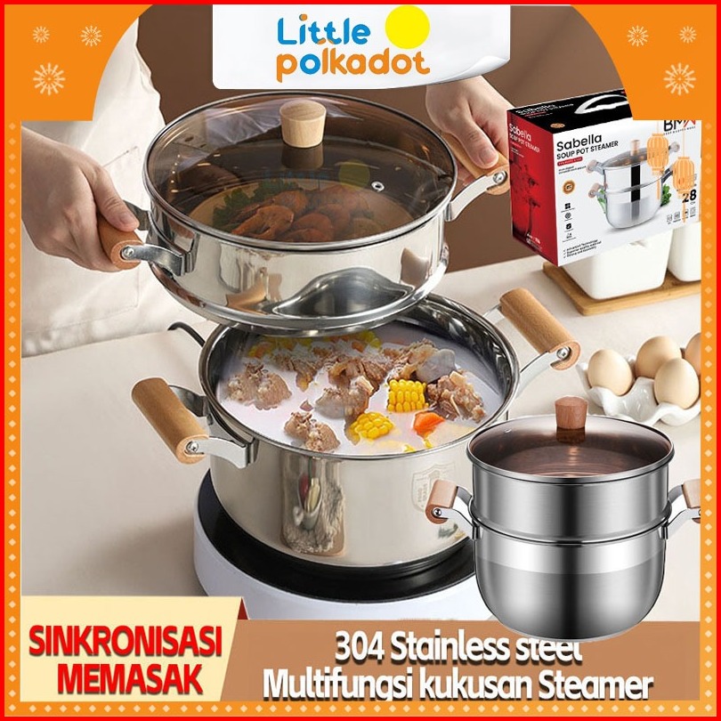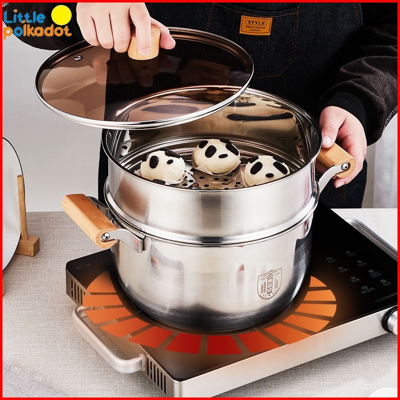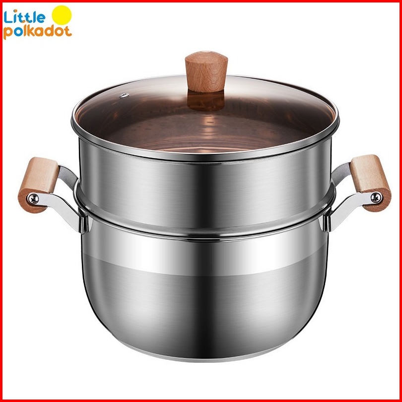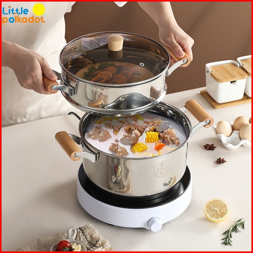 Panci Kukus Dandang Pegangan 2in1 Kayu Panci Steamer Stainless Steel Panci Sup Soup Pot Masak Nasi Panci Sup Stainless P