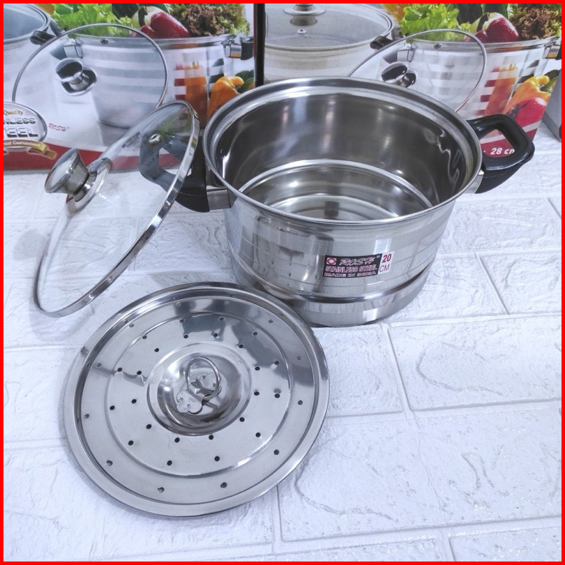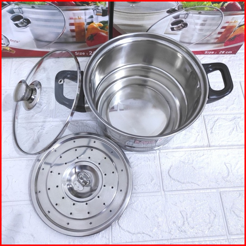 Panci Rosh Sauce Pot Steamer Kukus Kukusan Stainless 20cm 22cm 24cm 26cm 28cm Dandang Steamer Rosh Original Panci Kukus