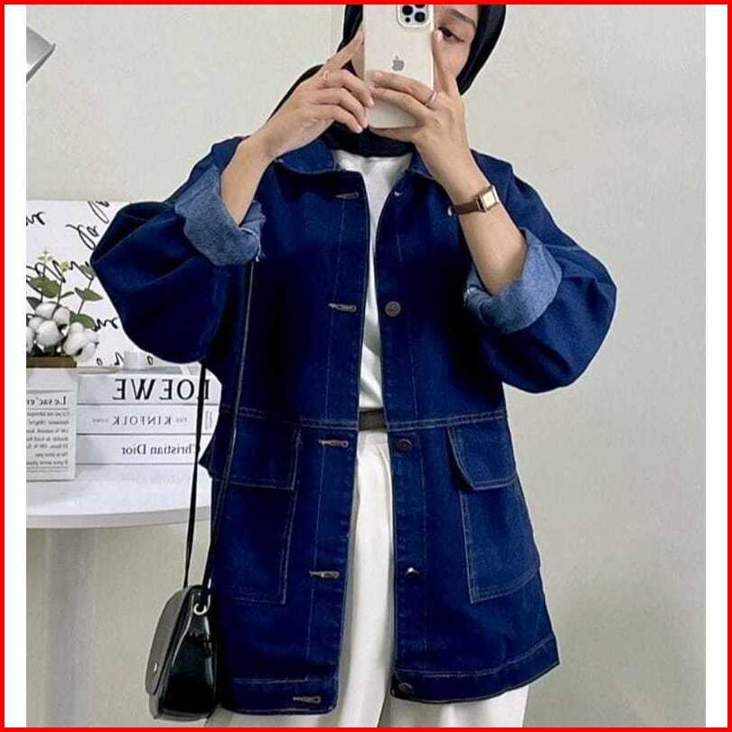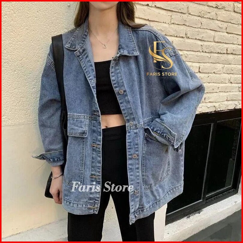 Jaket Jeans Oversize Denim Jacket Jumbo Wanita Tebal Premium