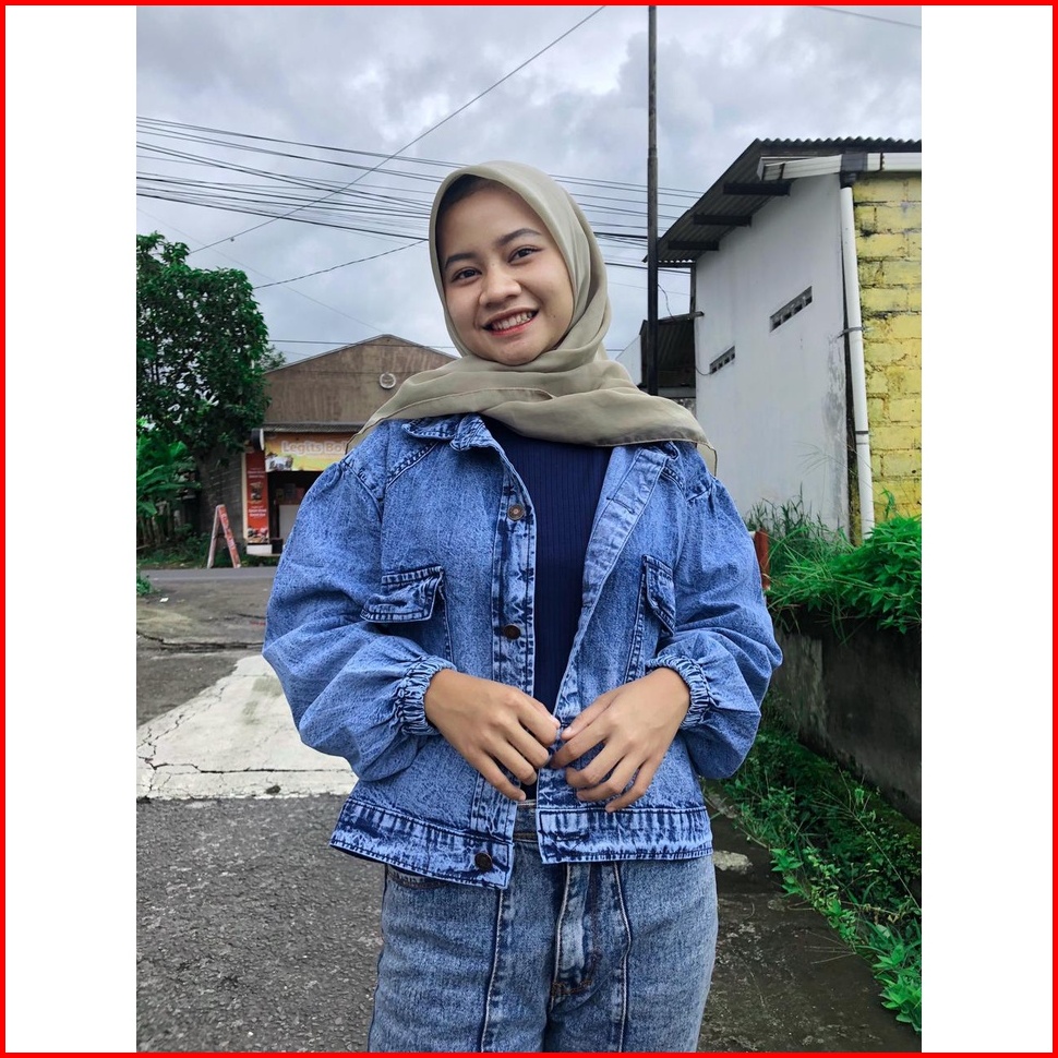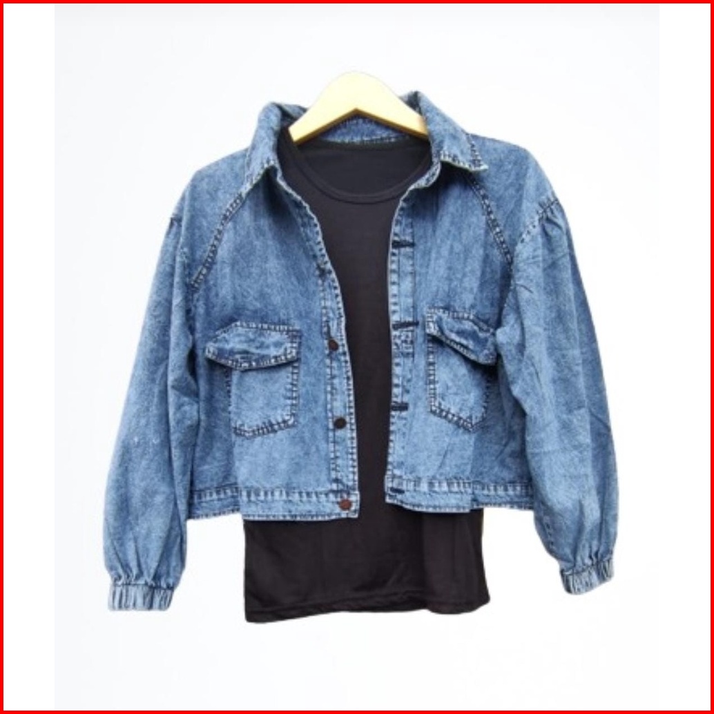 Vera Jaket Jaket Crop Oversize Lengan Balon Saku Depan Jacket Jeans Wanita Kekinian 2030