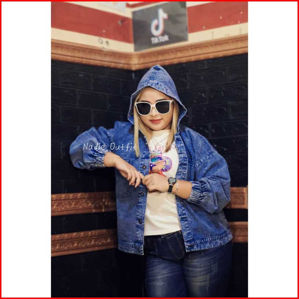 Jaket Jeans Hoodie Oversize Wanita Korean Jeans