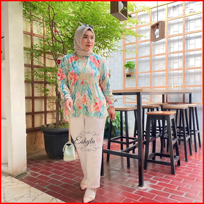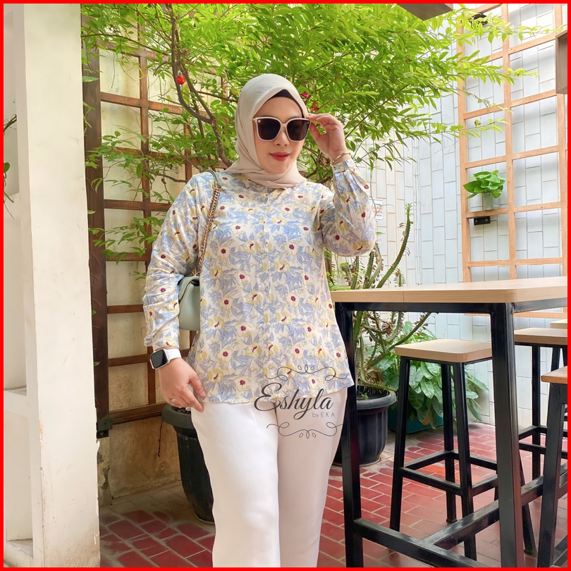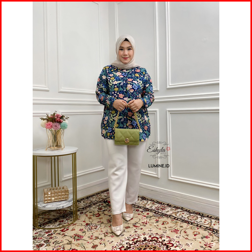 Yura Blouse Jumbo Ld 110 120 By. Eshyla - Kemeja Motif Katun Rayon Premium