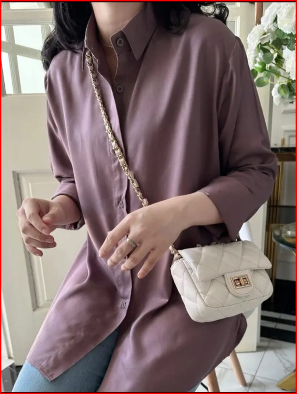 Kemeja Polos Wanita Bahan Rayon Twill Size M Ld 94 By Zubi Fashion