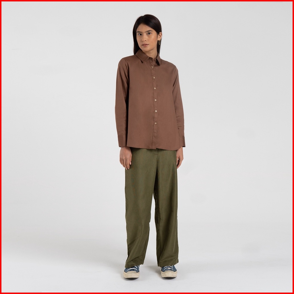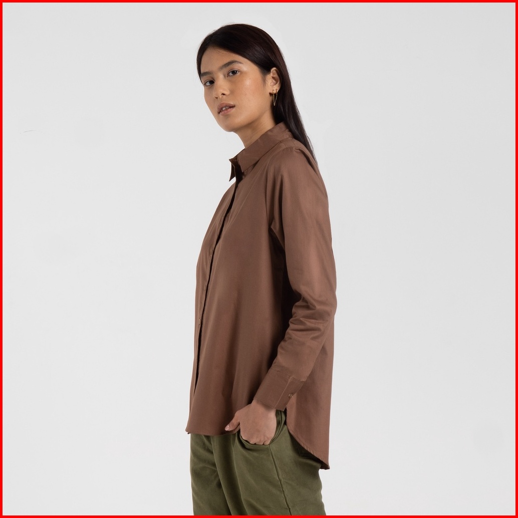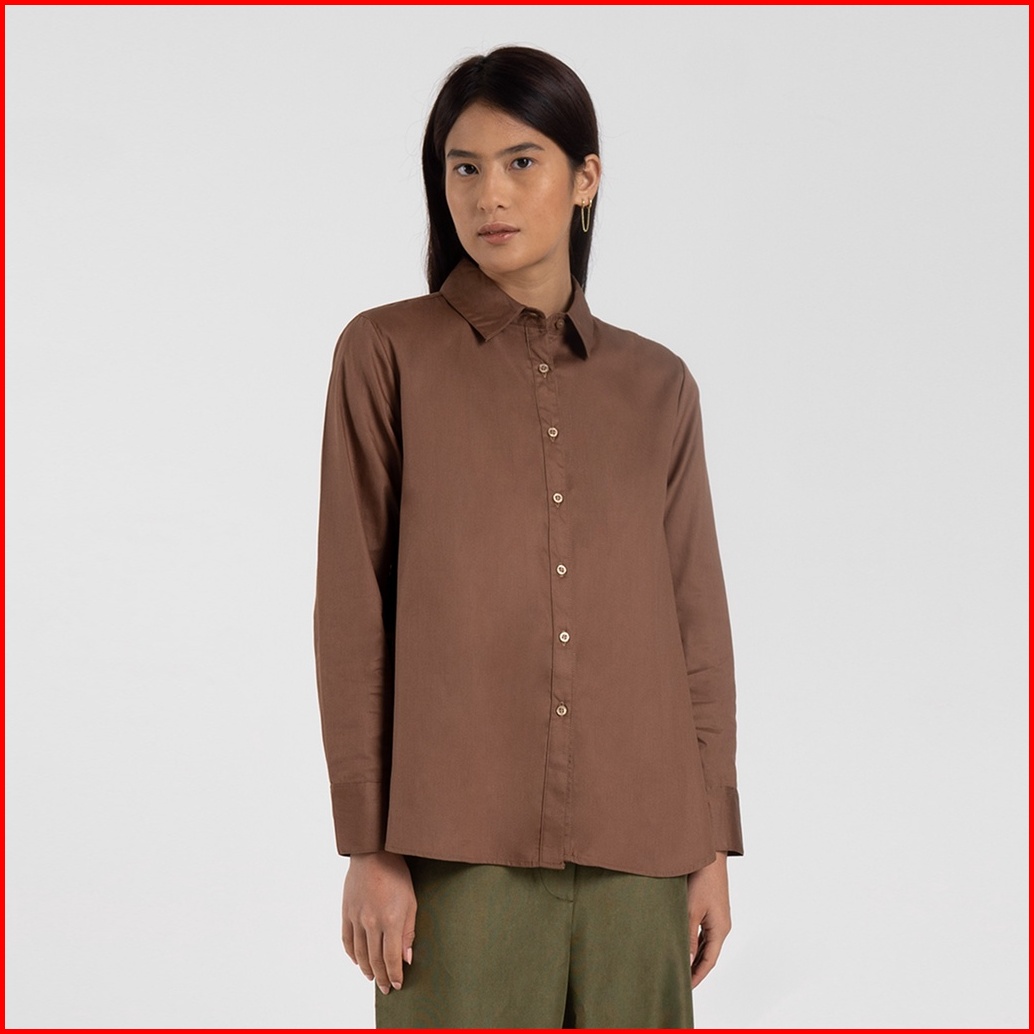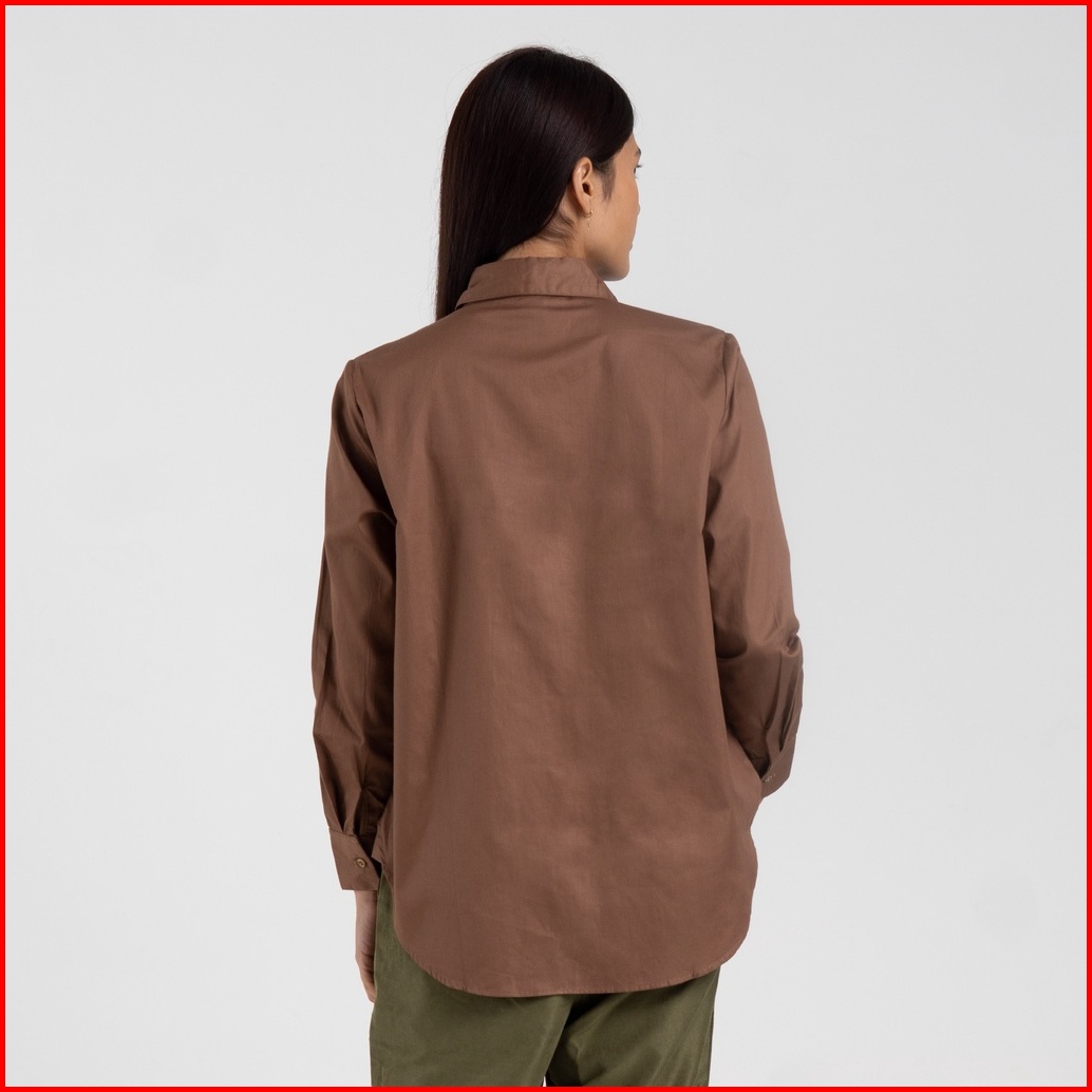 M231 Kemeja Wanita Basic Polos Panjang Coklat 2454c