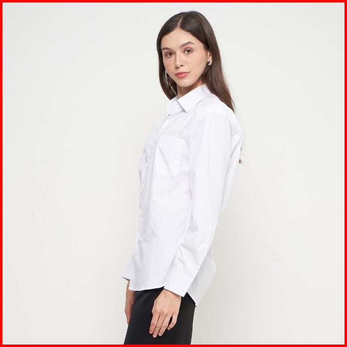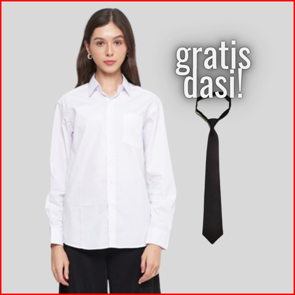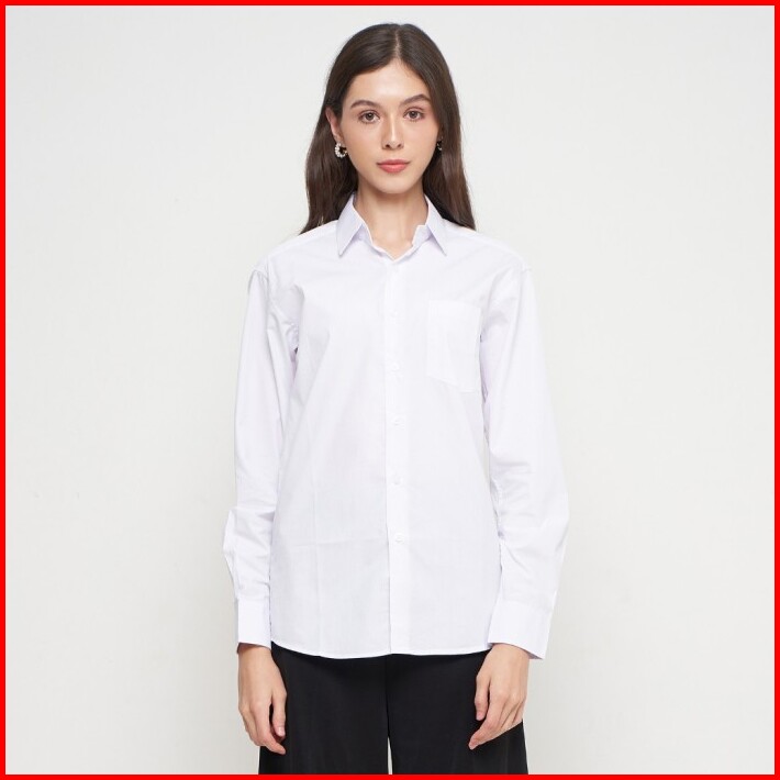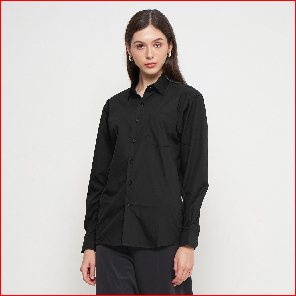 Kemeja Polos Wanita Lengan Panjang Hem Basic Kerja Formal Atasan Cewek Bahan Katun Premium
