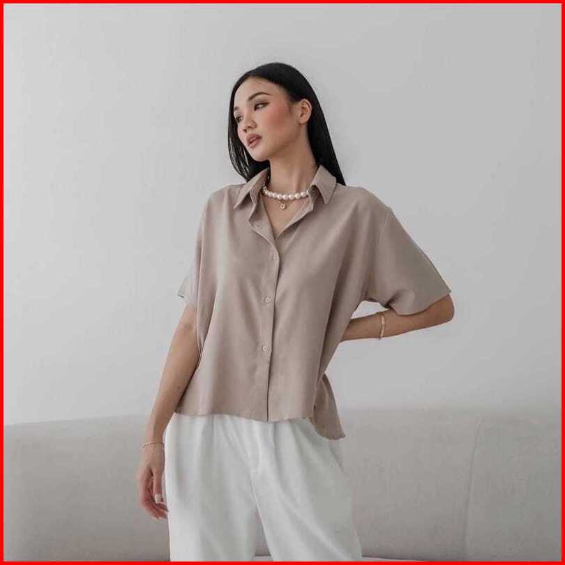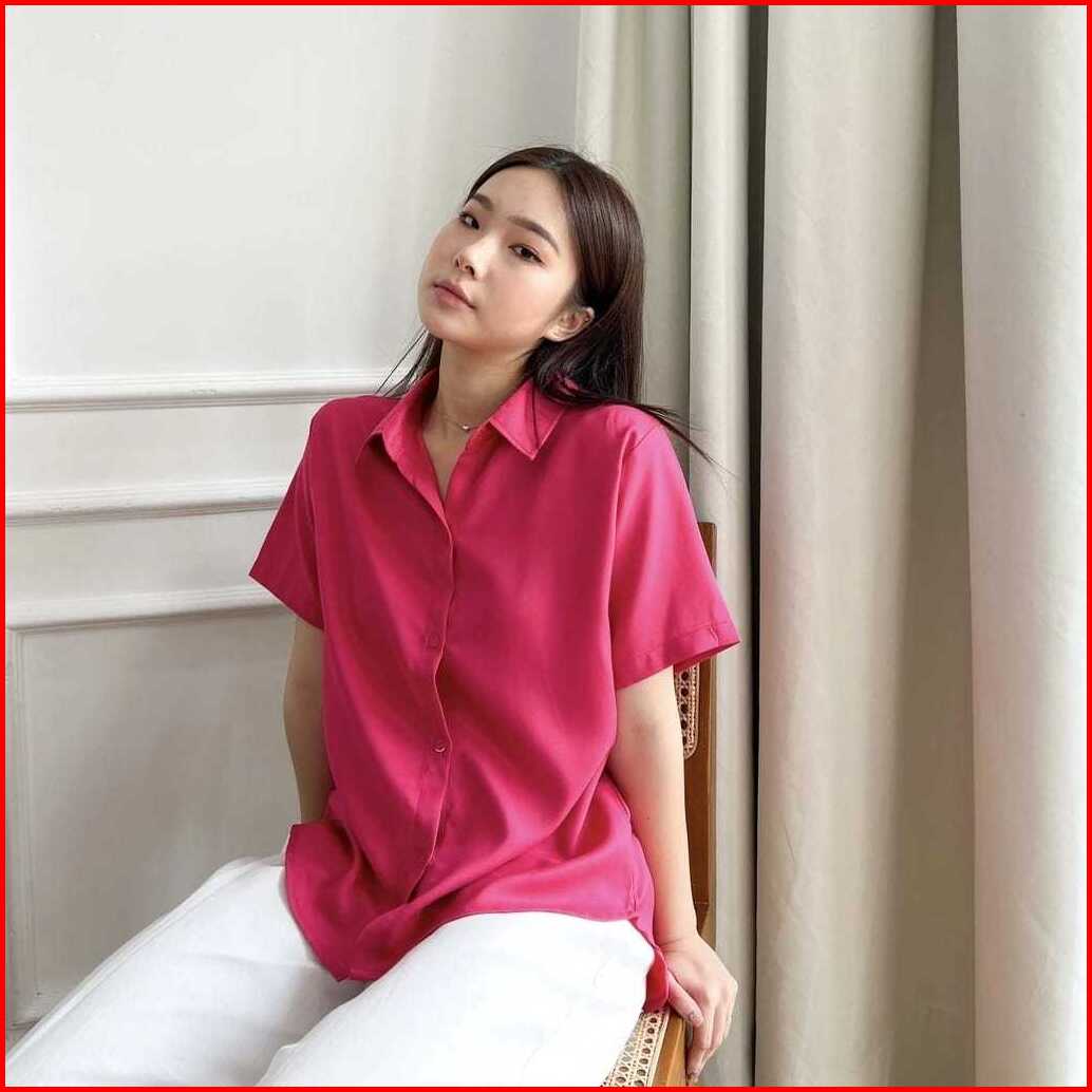 99miracleshop Park Shirt Top Atasan Blouse Kemeja Lengan Pendek Wanita Pakaian Wanita.