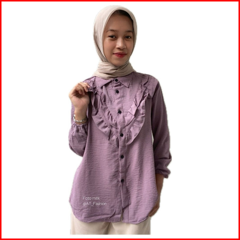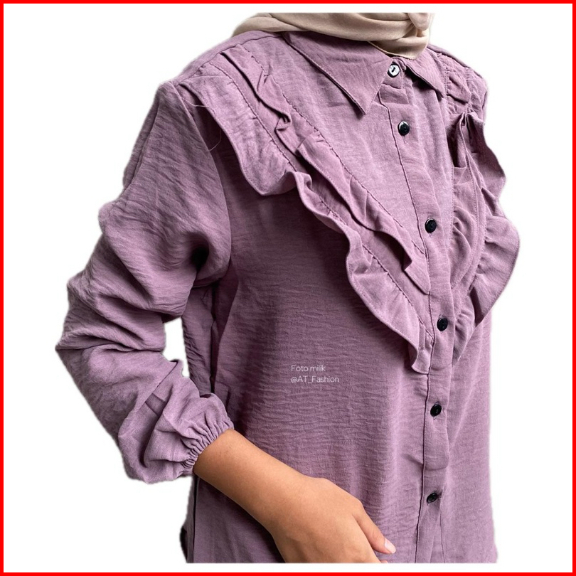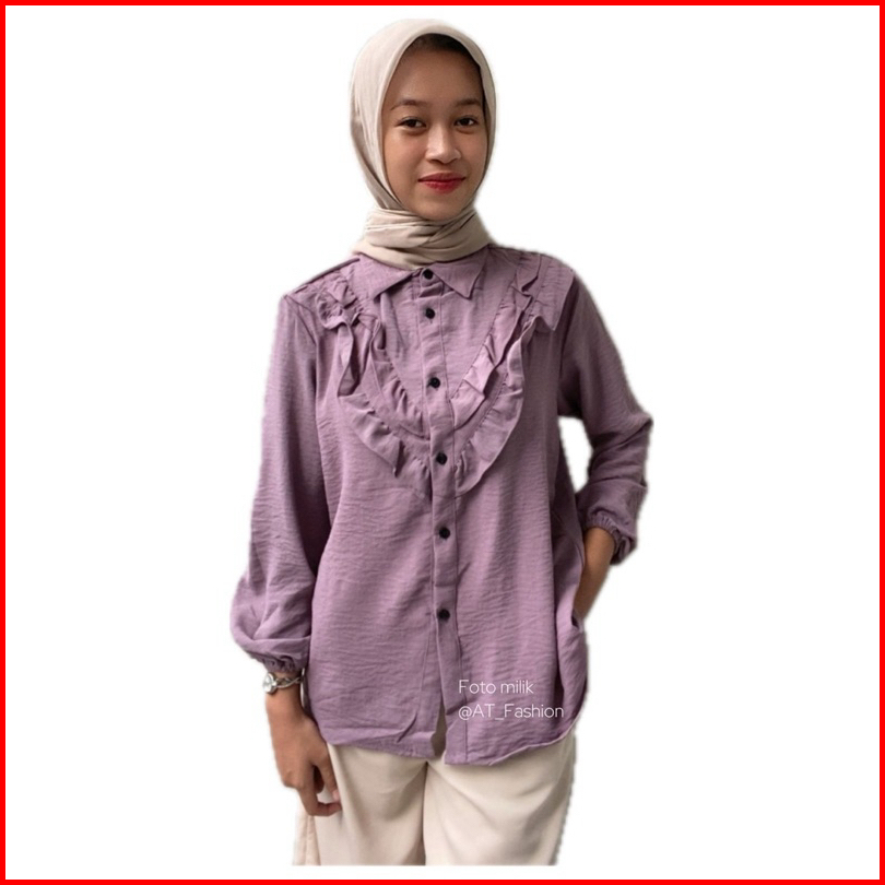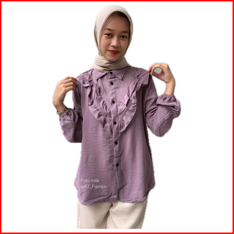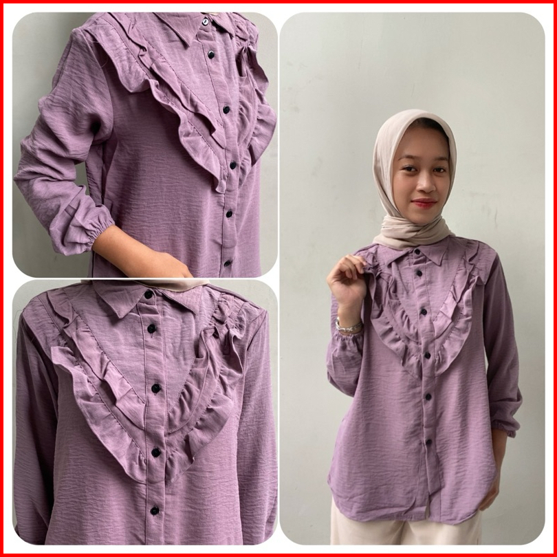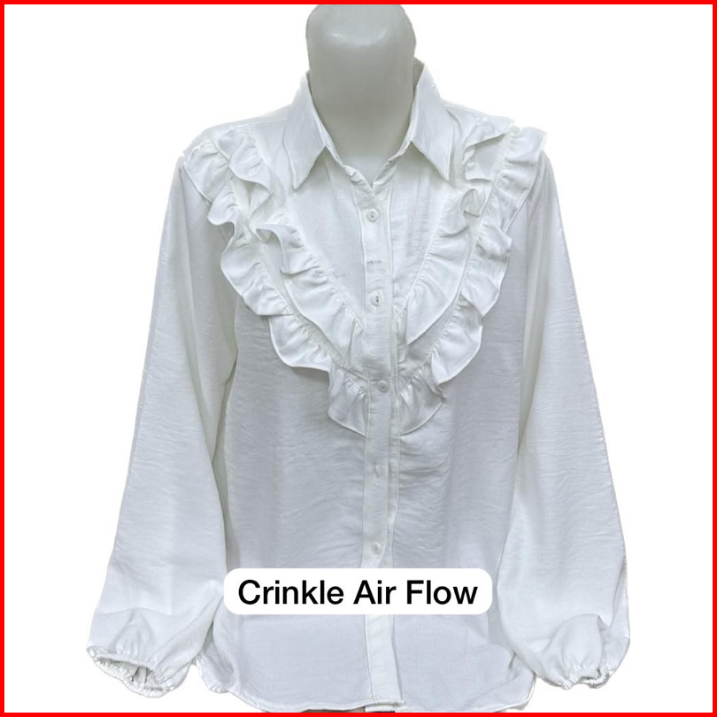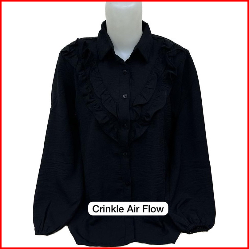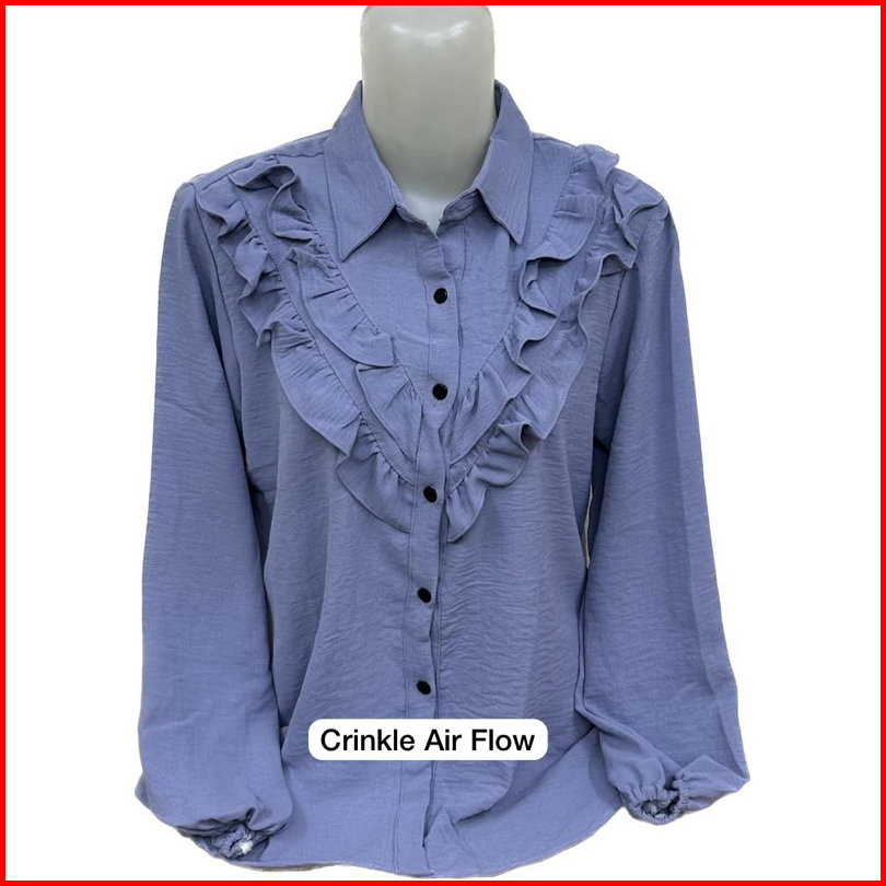 Blouse Korea -kemeja Rempel Double V Crinkle Airflow- Atasan Wanita - Pakaian Terlaris - Korean Style - Pakaian Wanita -