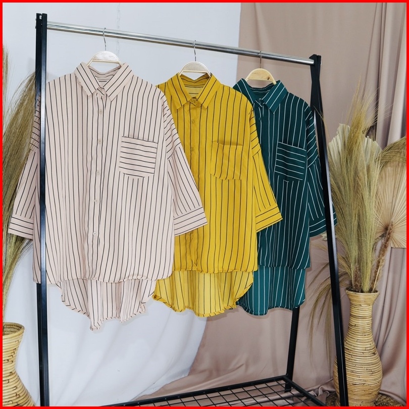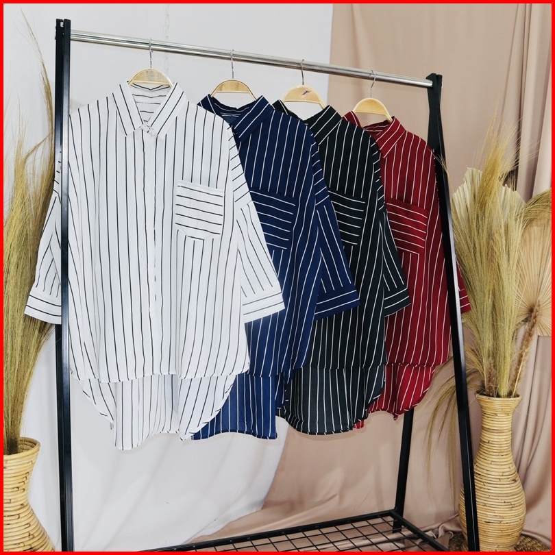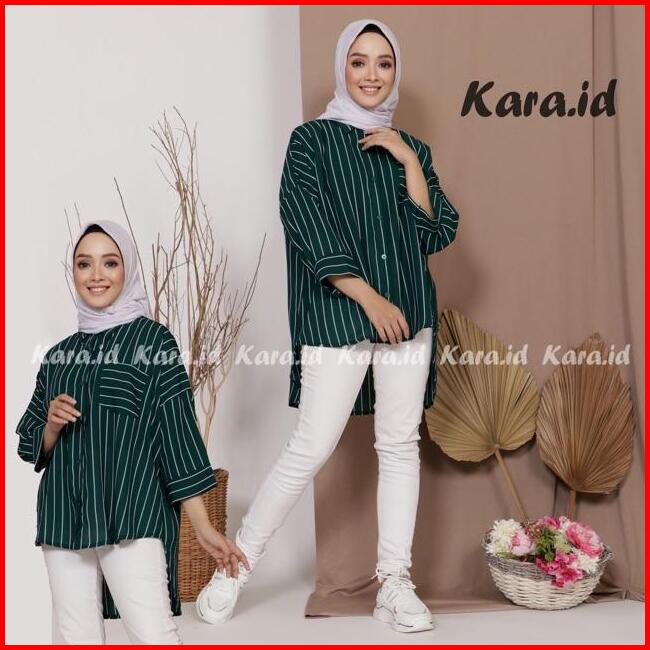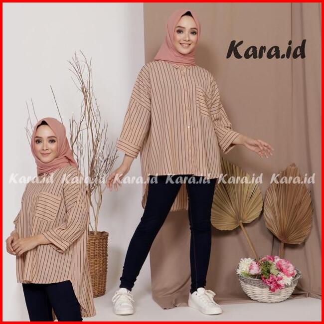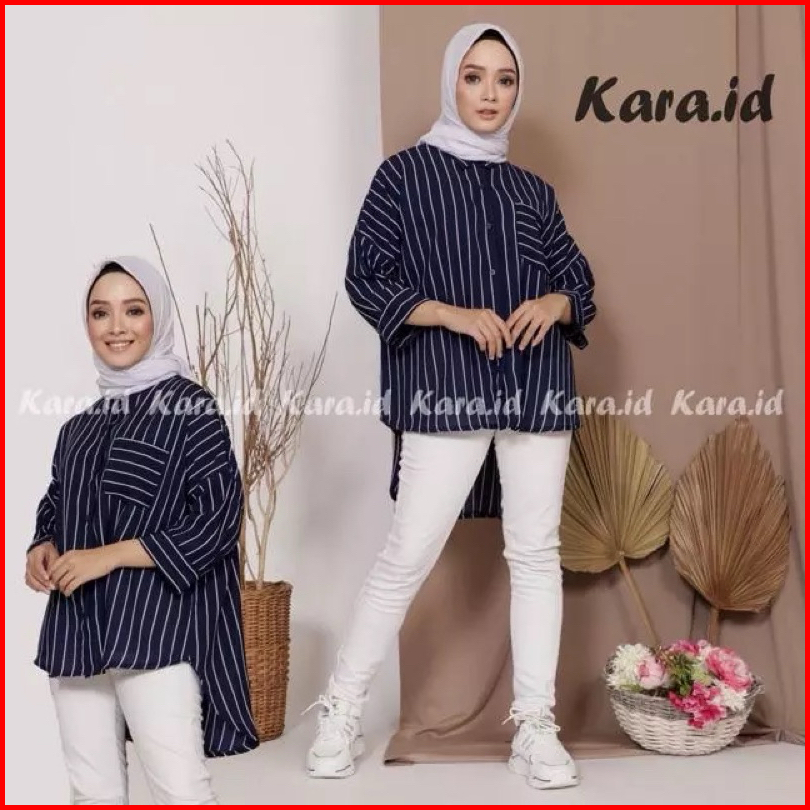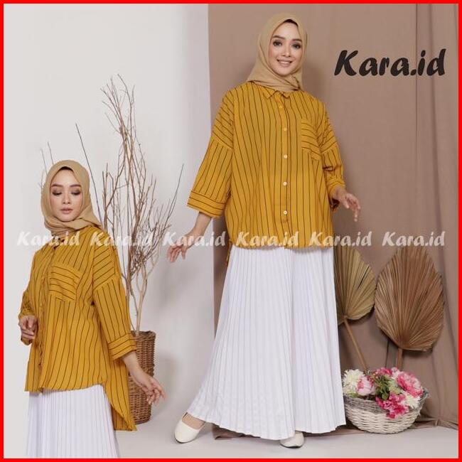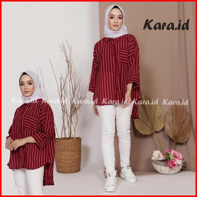 Kara.id Kemeja Salur - Atasan Wanita Stripe Shirt - Kemeja Atasan Wanita