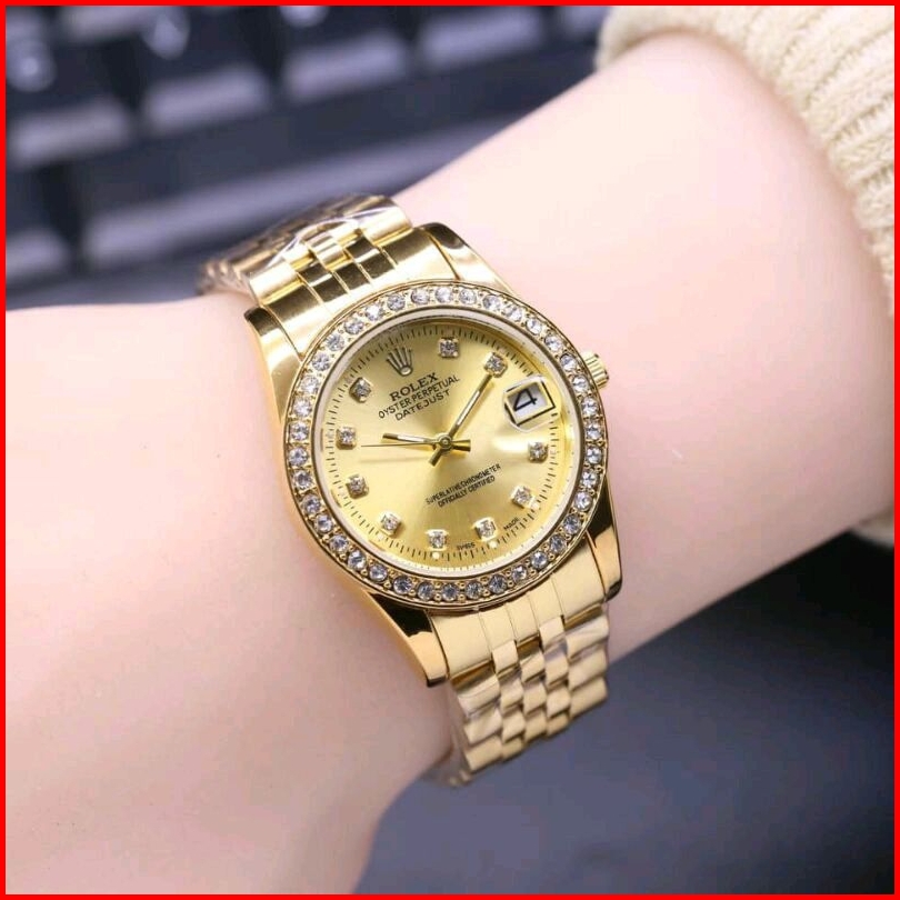 Promo Jam Tangan Wanita Rolex Anti Air Rantai Tanggal Aktif Motif Mata Free Box Dan Baterai Cadangan