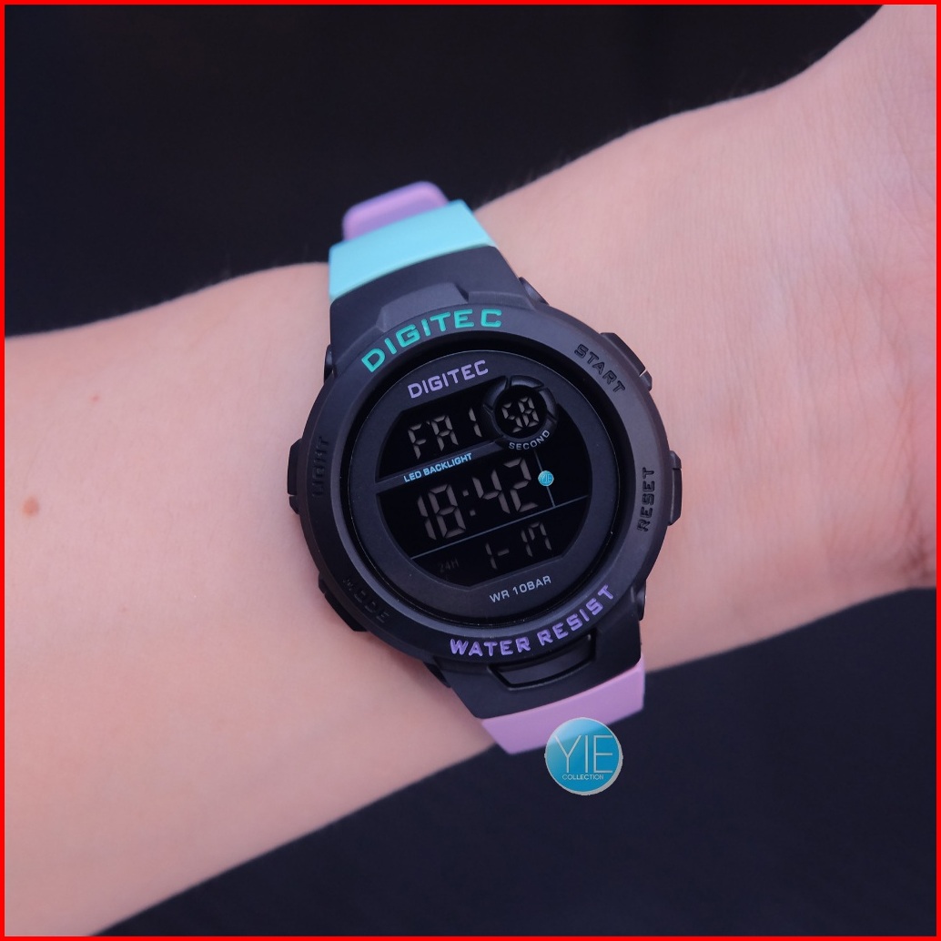 Jam Tangan Wanita Original Anti Air Fashion Digitec Digital Bda 7082 Sport Tali Karet