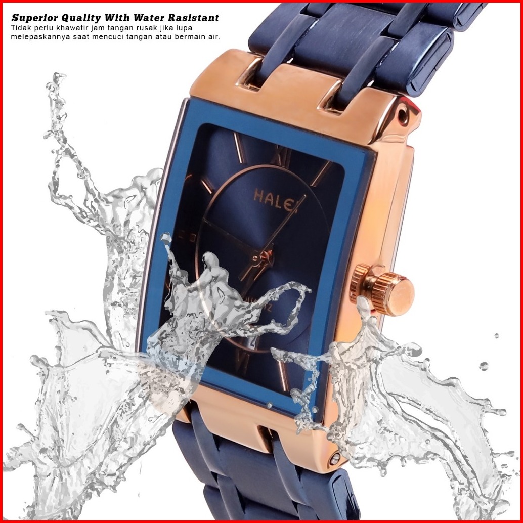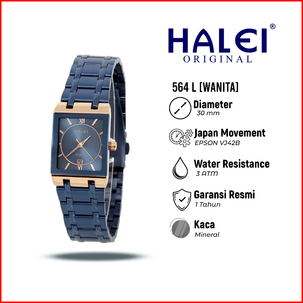 Halei 564 L Jam Tangan Wanita Halei Original Anti Air Rantai Stainless Back Tanggal Analog Kekinian