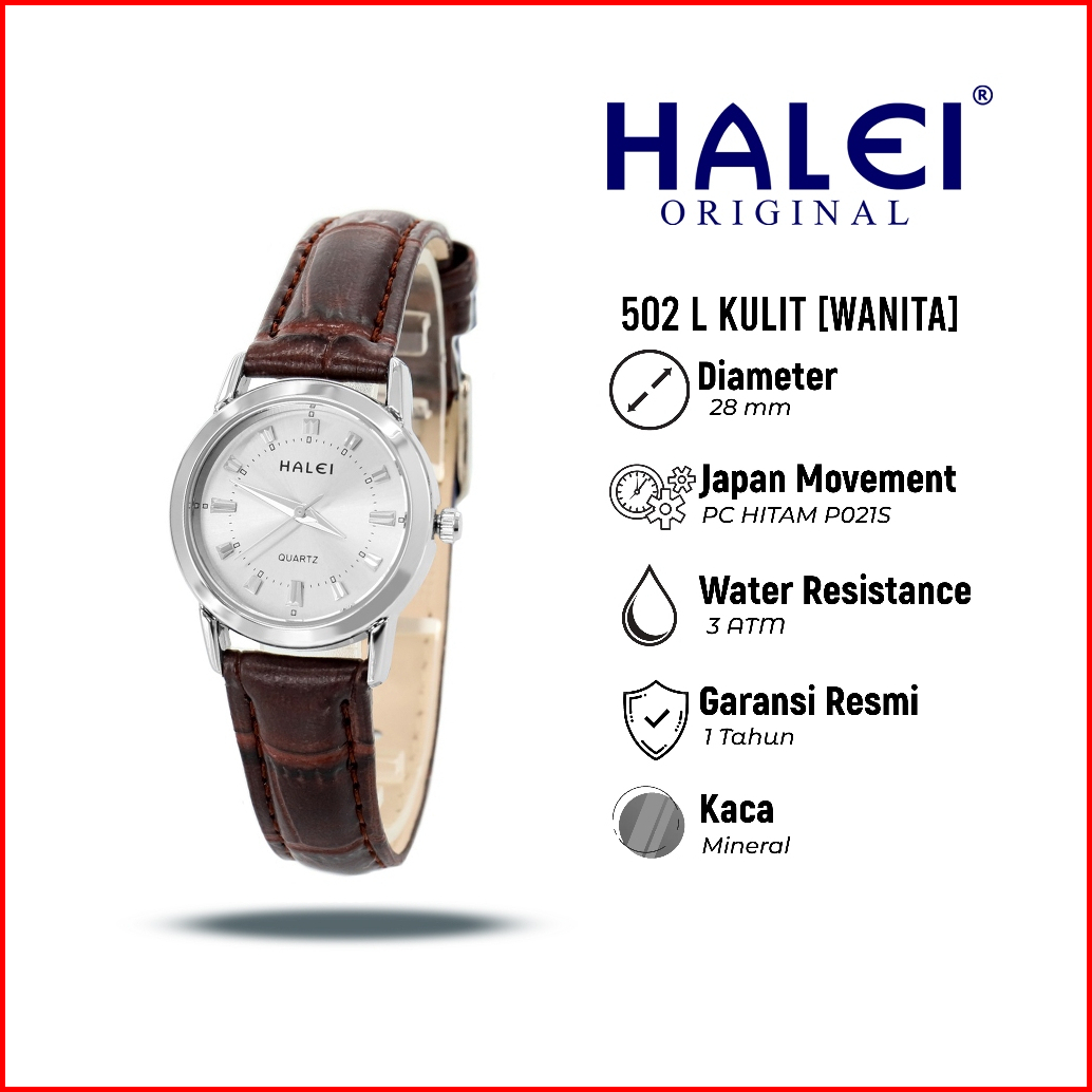Halei 502 L Jam Tangan Wanita Halei Original Fashion Anti Air Kulit Croco Analog Kekinian
