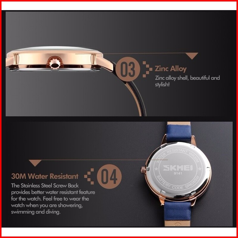 Jam Tangan Wanita Analog Skmei 9141 White Water Resistant 30m