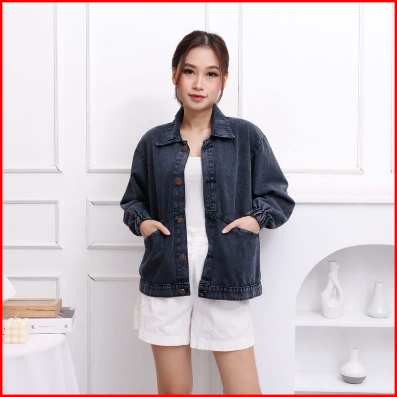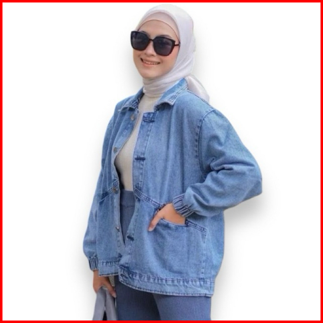 Jaket Jeans Vintage Jumbo Wanita Oversize Ld 120 - Jacket Denim Cewek Keren - Cardigan Korean Style