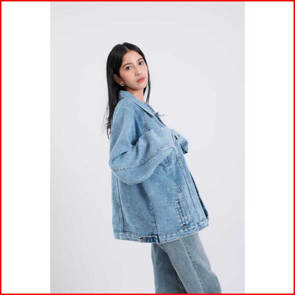 Big Mouse Denim Jacket Wanita Snow Oversize Saku Aktif Tangan Kancing