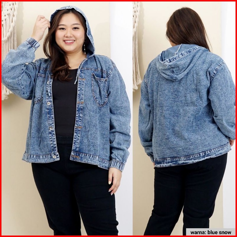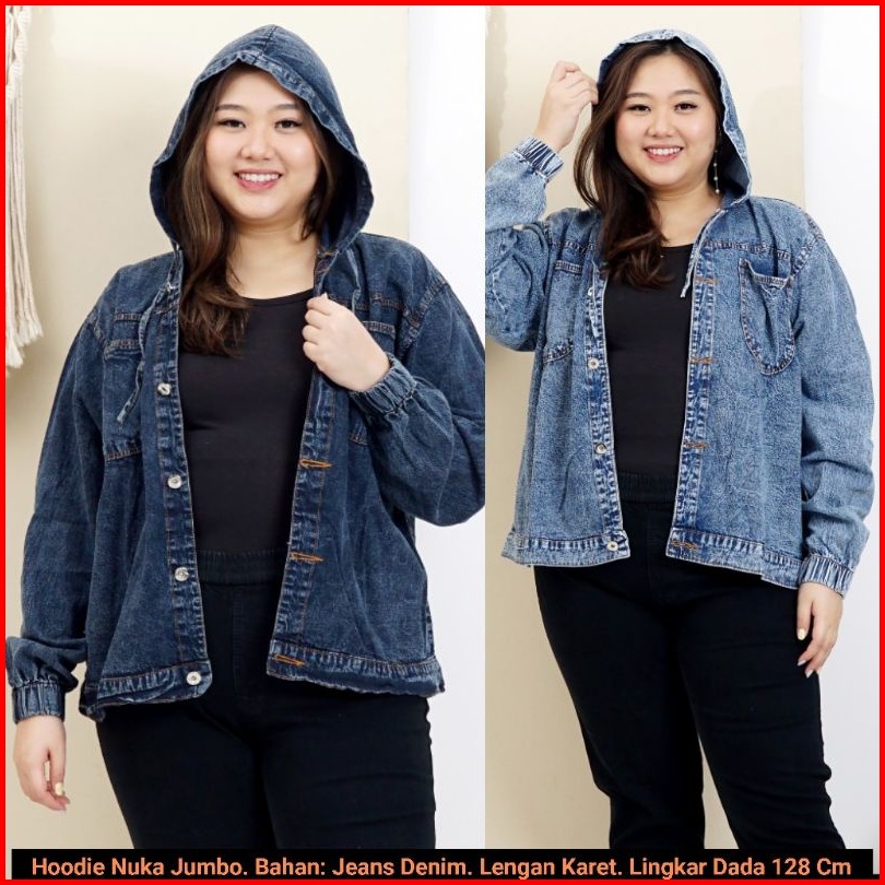 Jaket Hoodie Jeans Denim Jumbo Nuka Xxl Nyaman