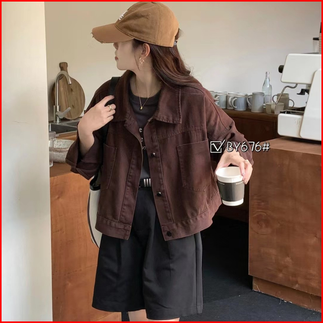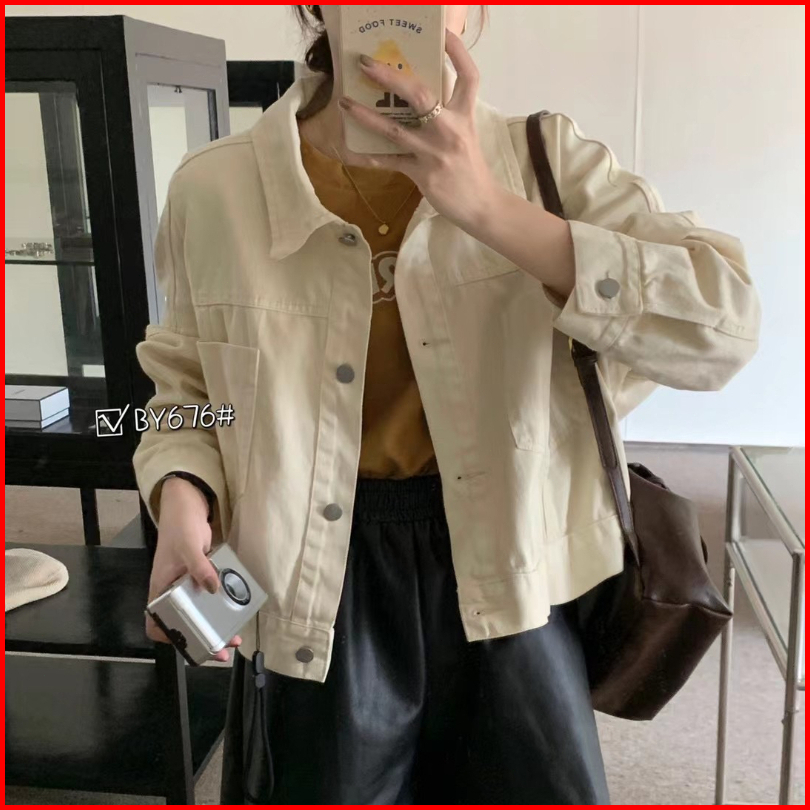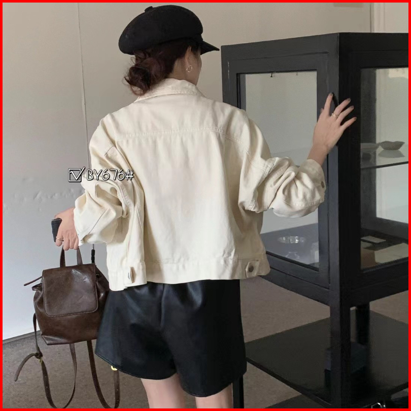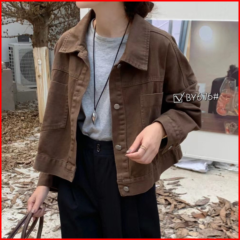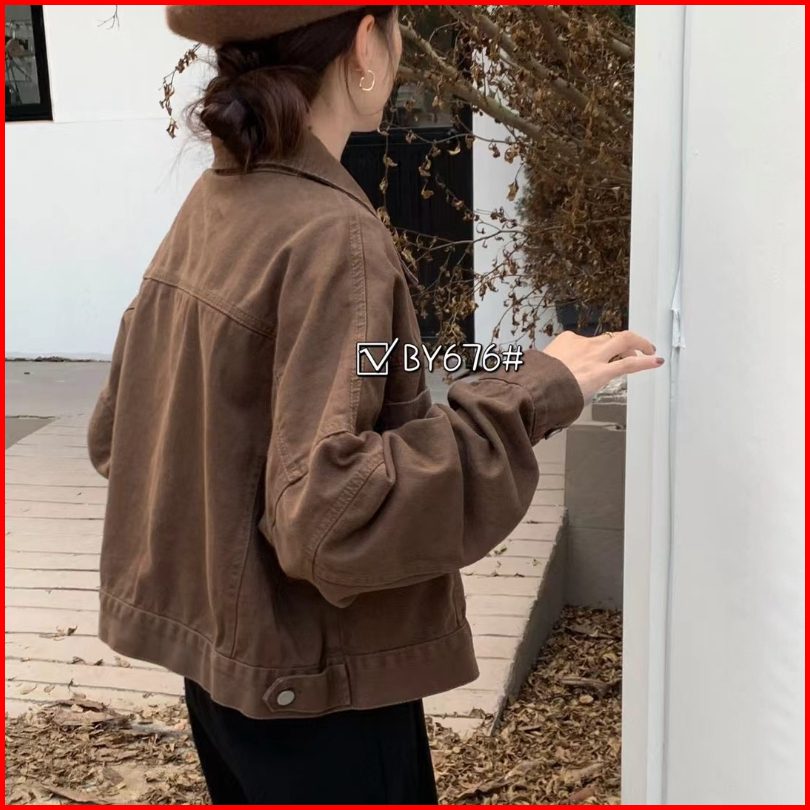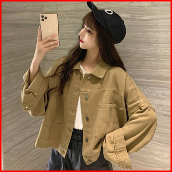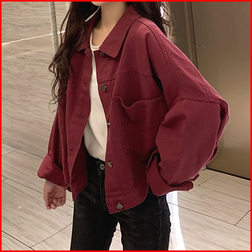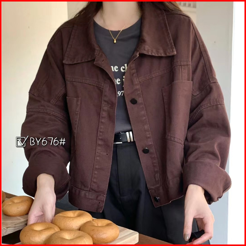 Yikoo-jakets Denim Oversize Lengan Panjang Multi-warna Coat Wanita