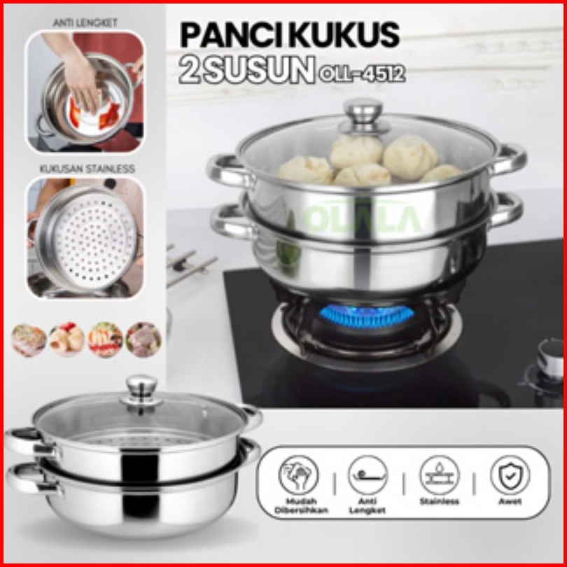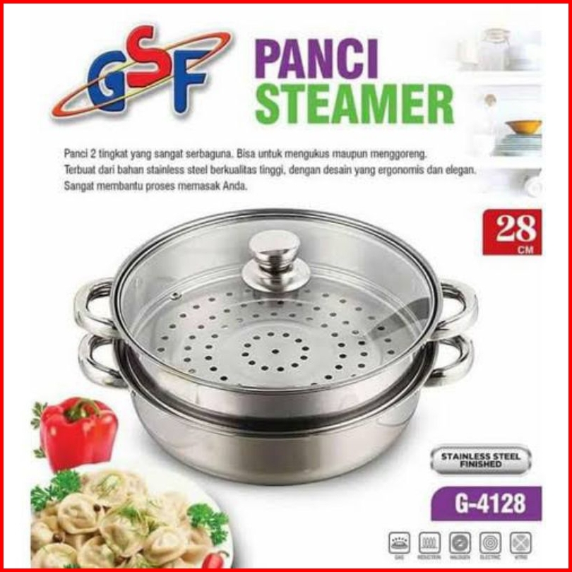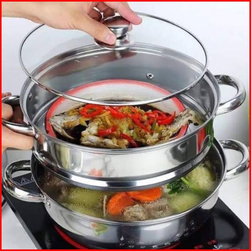 Panci Steamer 2 Susun Panci Pengukus Kukus Stainless Steel 28cm Panci Siomay Gsf