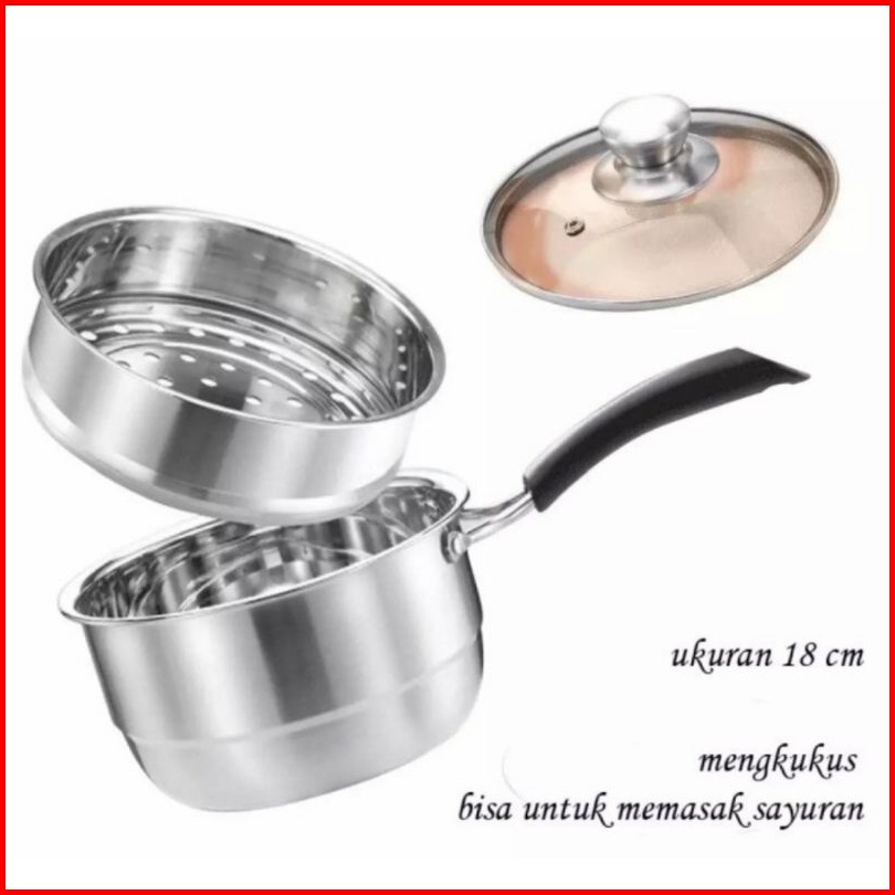 Panci Susu Steamer Calypso 20cm Panci Kukus 2 Susun Dandang Steamer Stainless Tebal 20cm