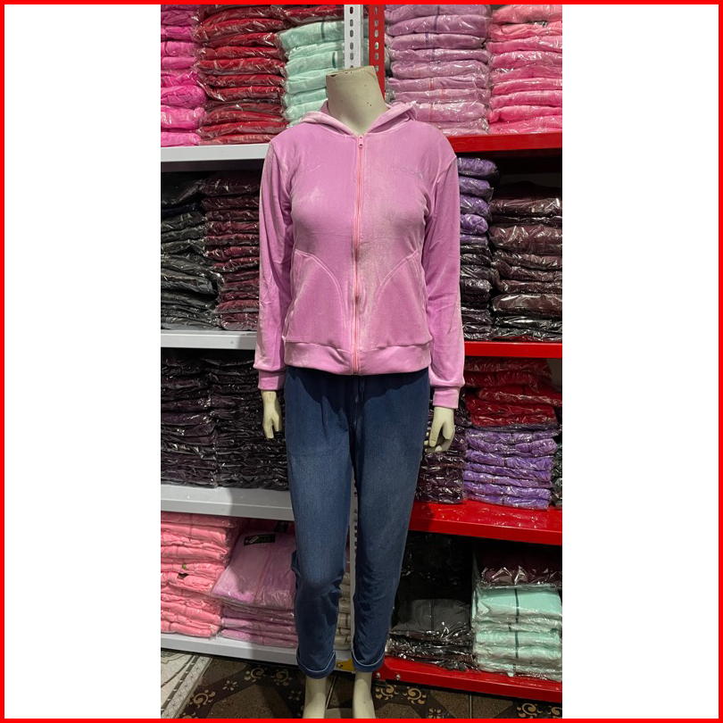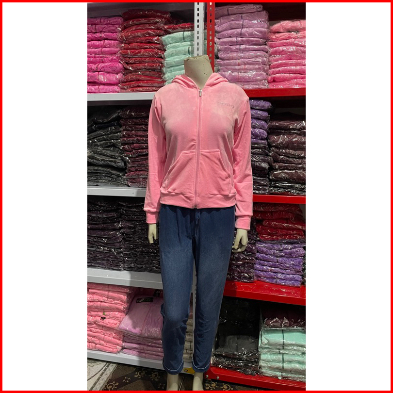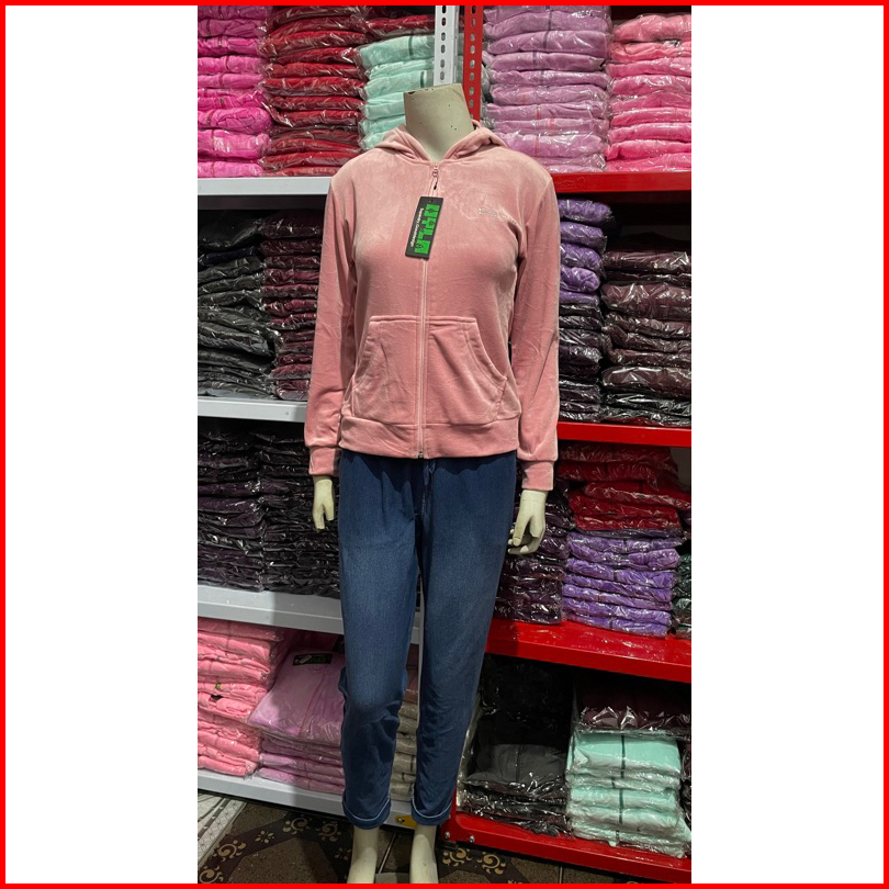 Hyla Jacket Beludru Perempuan Hoodie Zipper Dewasa