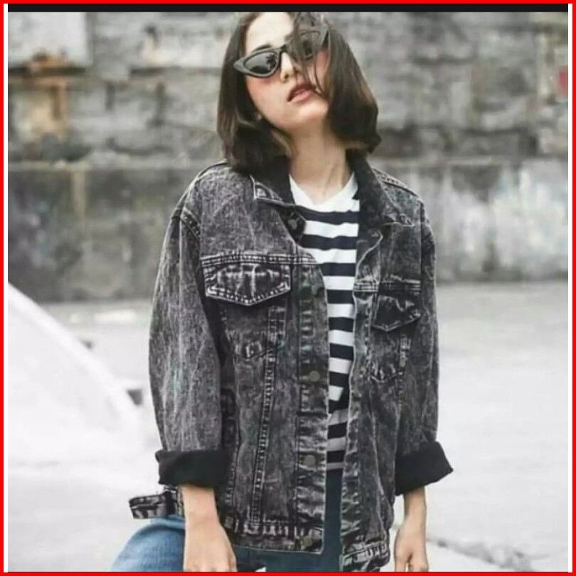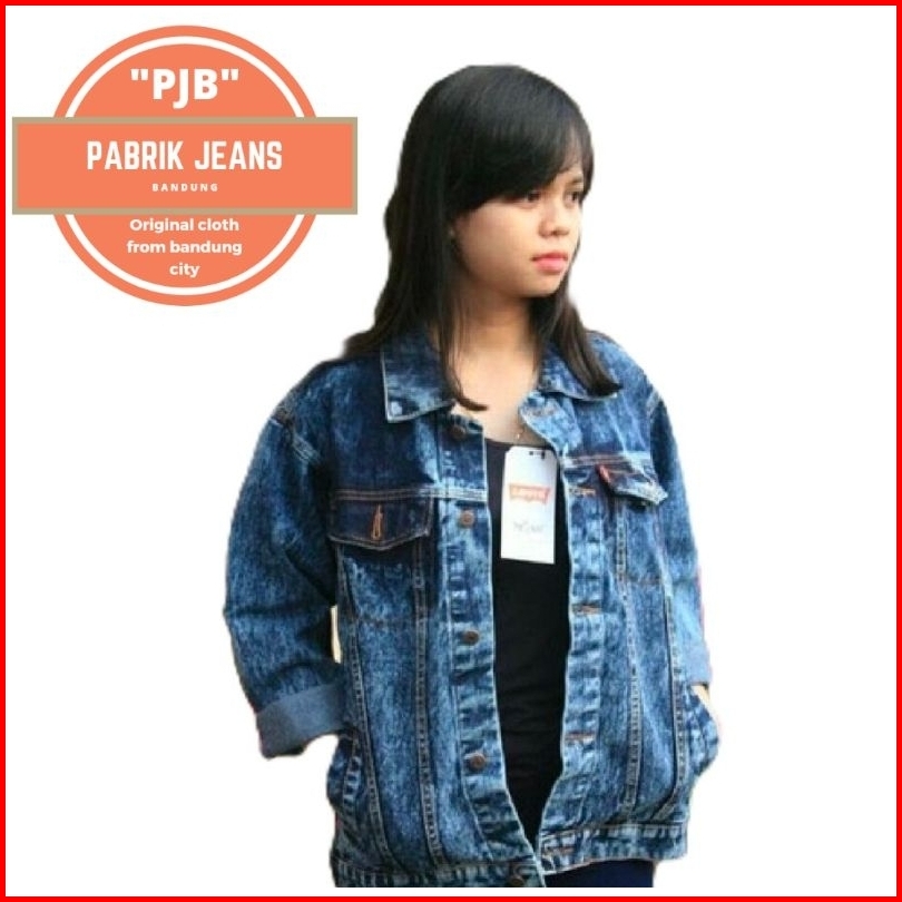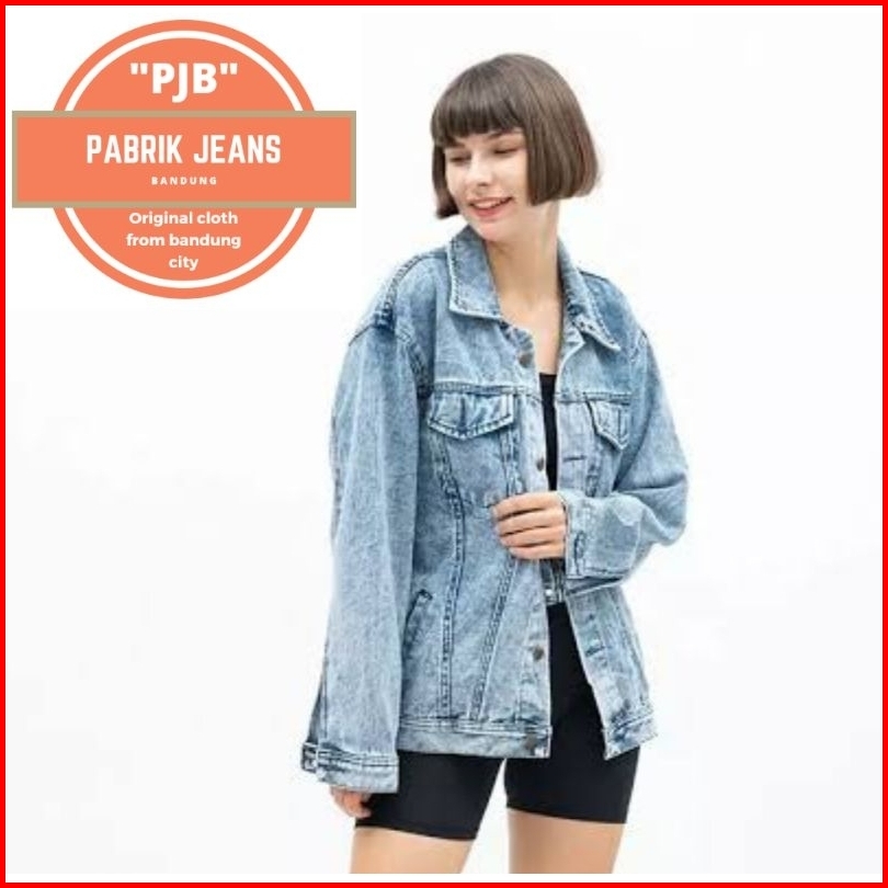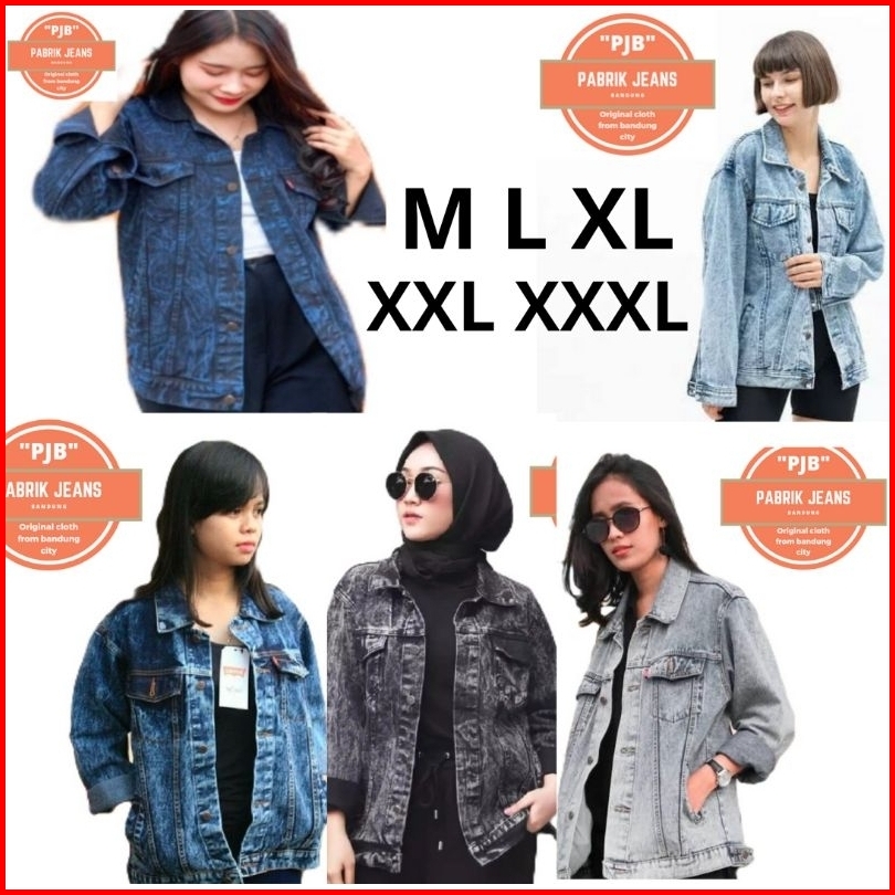 Jaket Jeans Sandwash Wanita Jumbo Oversize M L Xl Xxl Xxxl Pabrikjeansbandung