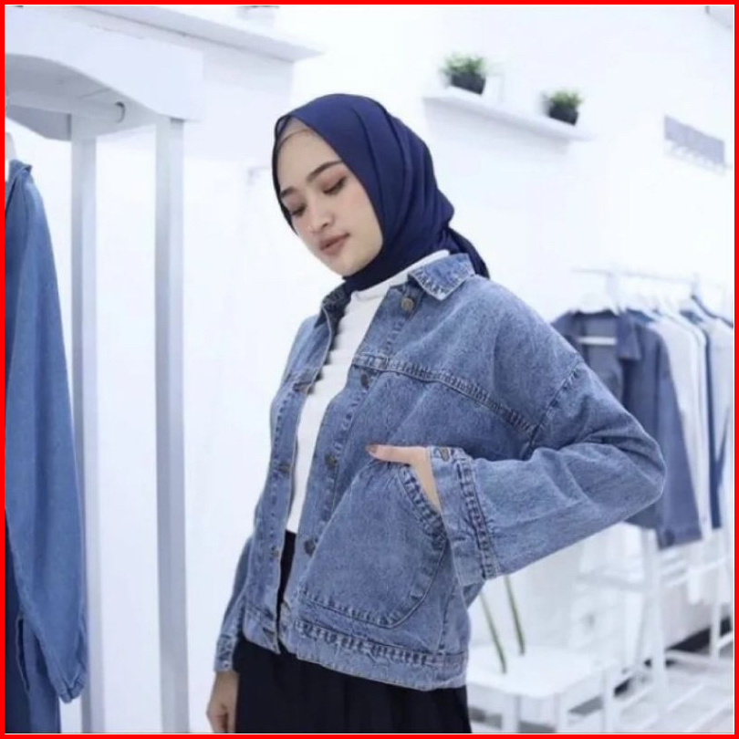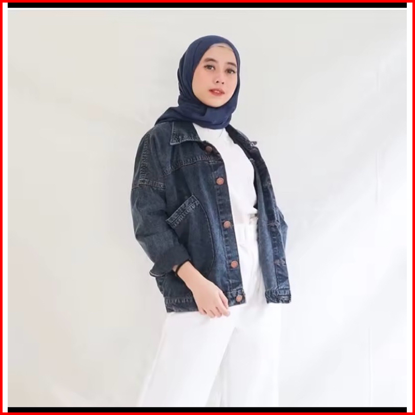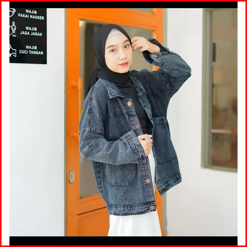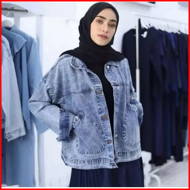Jaket Jeans Oversize Korean Style - Jaket Wanita Kekinian - Jaket Denim Cewek - Outer Jeans Wanita