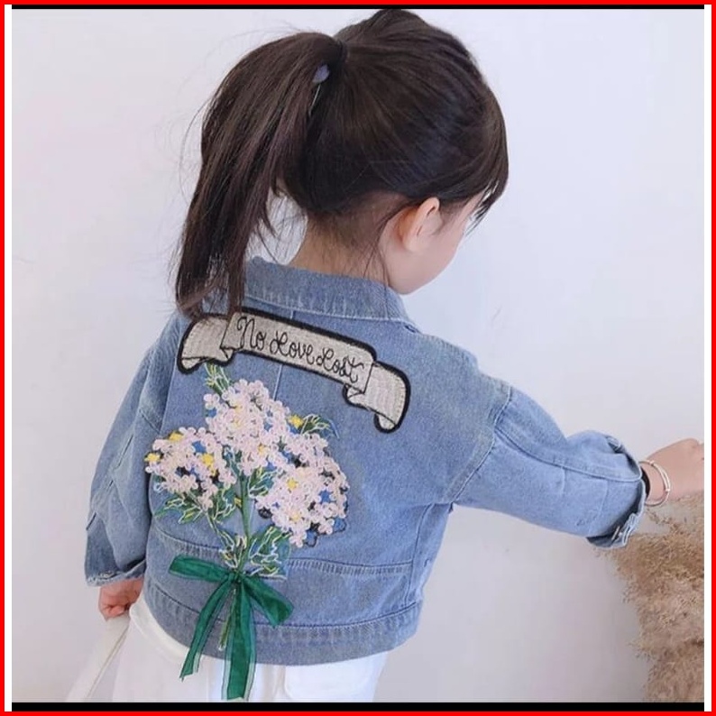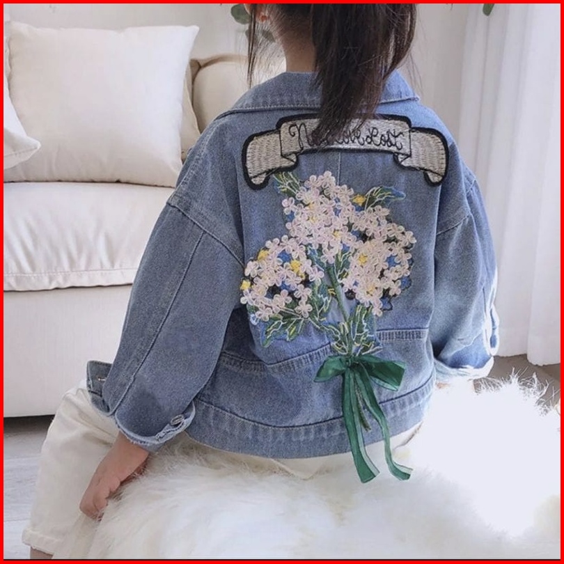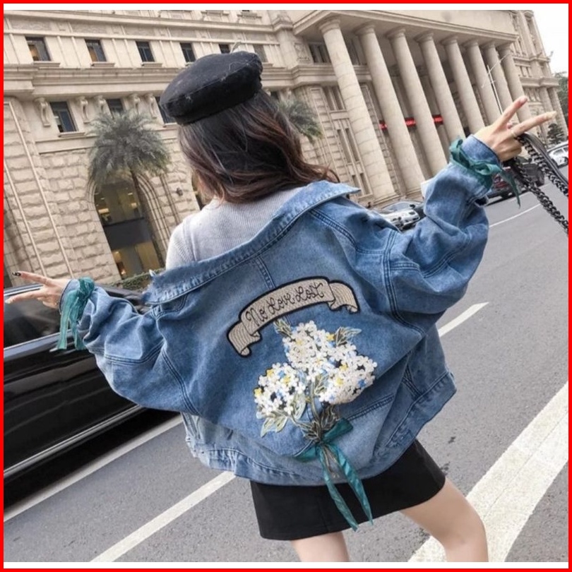 Original Jaket Jeans Bordir Kembang Dengan Pita