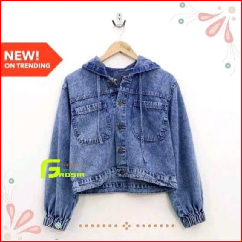 Jaket Jeans Hoodie Kancing Wanita Ld 110cm Jaket Jeans Wanita Kekinian