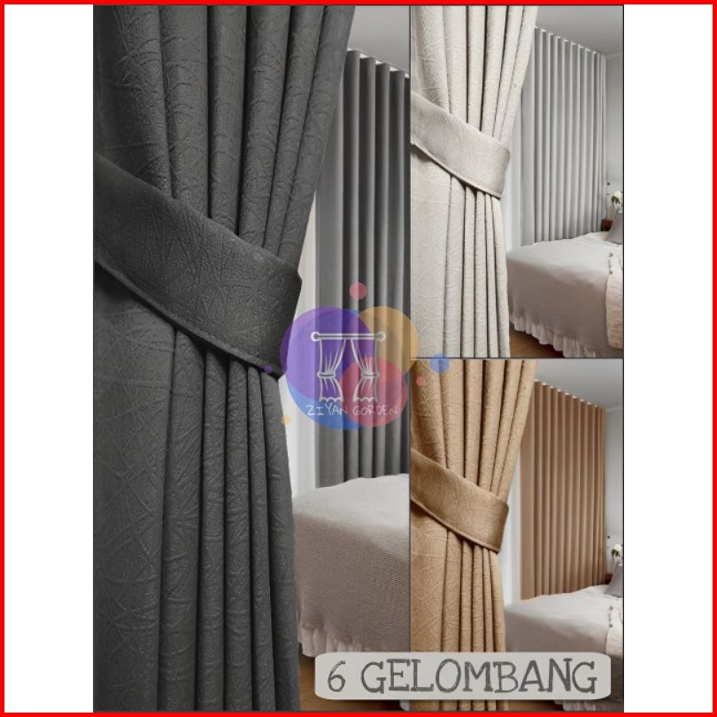 Gorden Blackout Polos Minimalis Premium 6 Gelombang Gorden Tebal Gorden Motif Emboss Gorden Jendela Lebar Gorden Mewah G