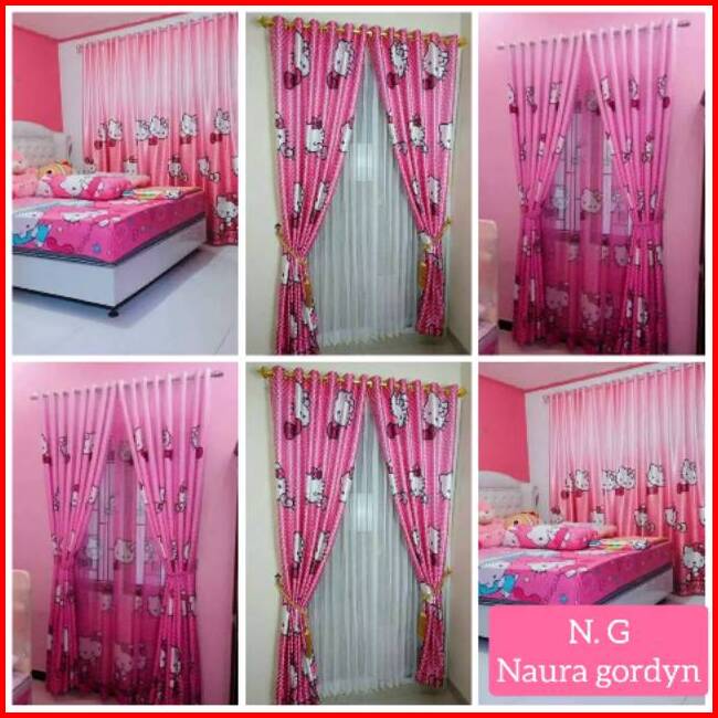 Gorden Jendela Karakter Blackout Motif Hellokitty Tirai Pintu Jendela Karakterkorden Kamar Minimalis