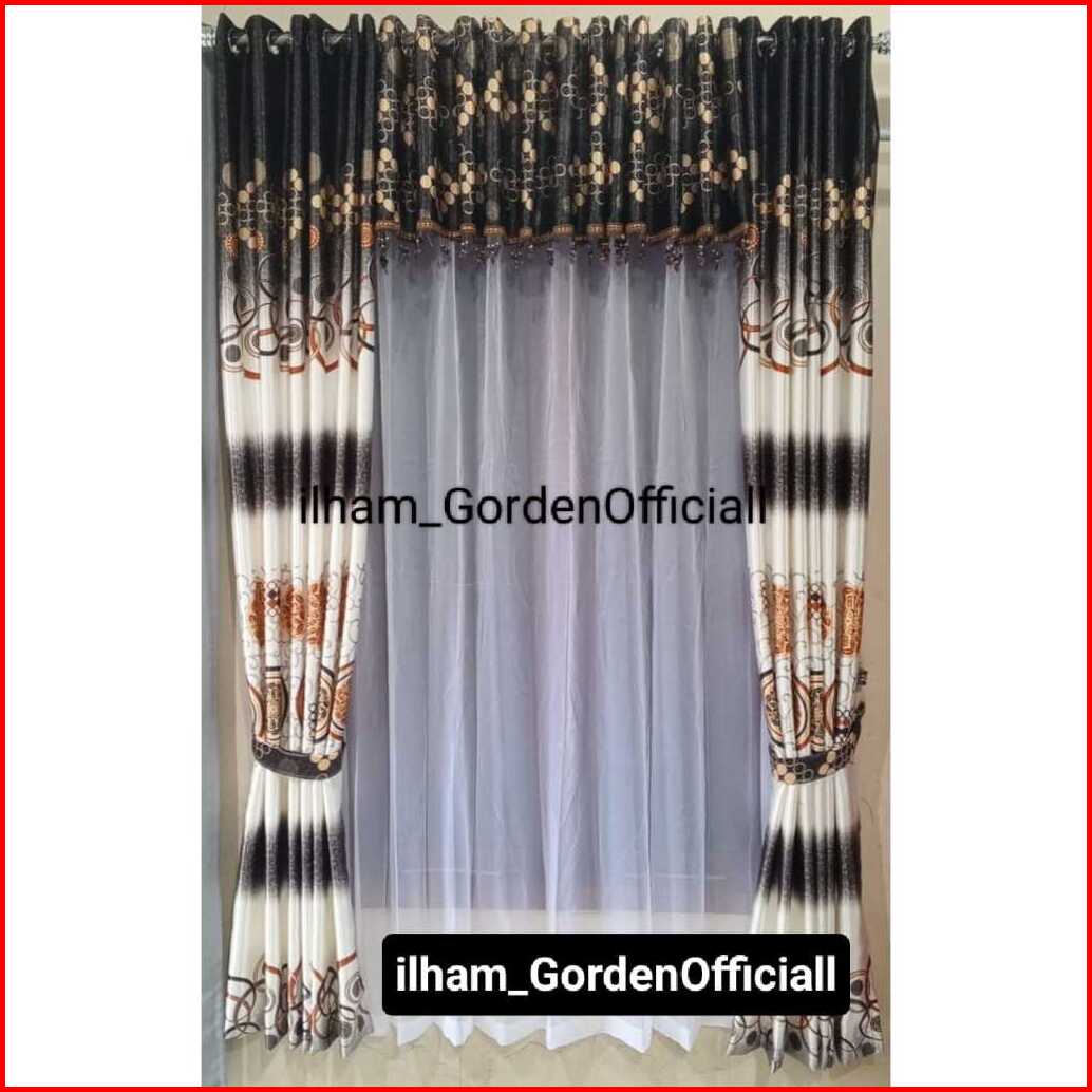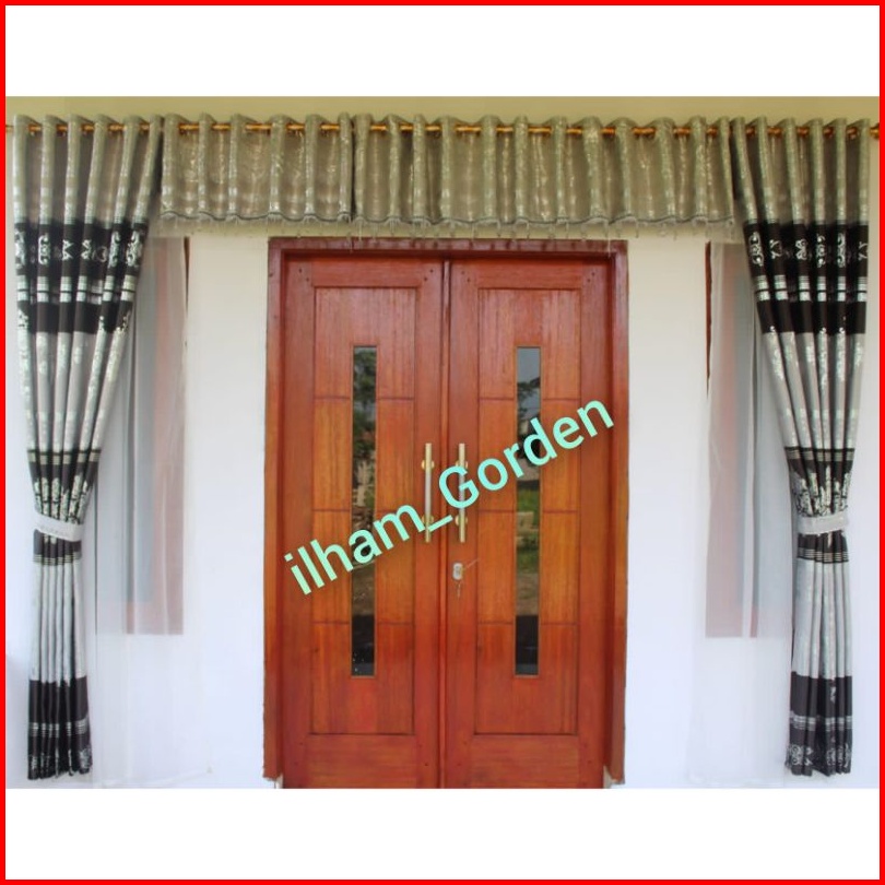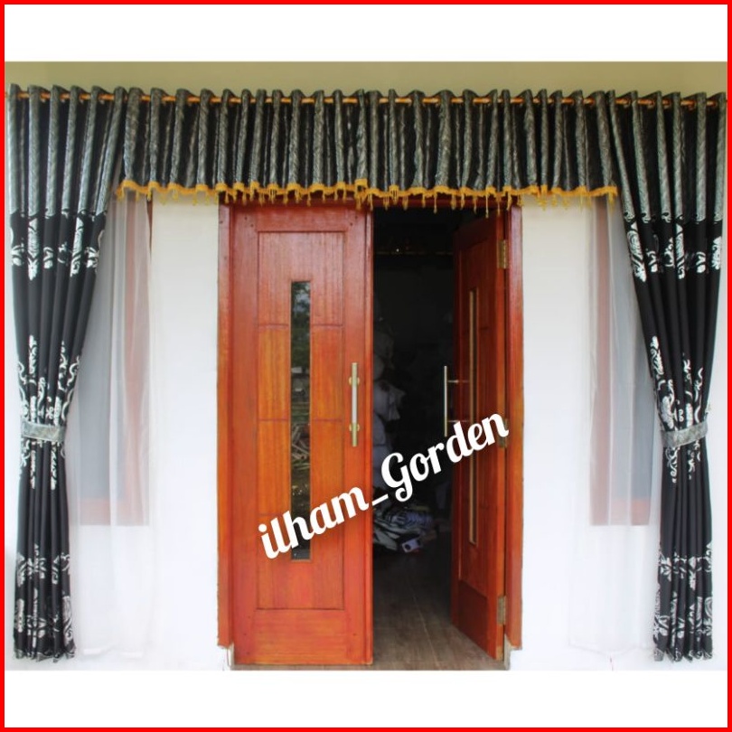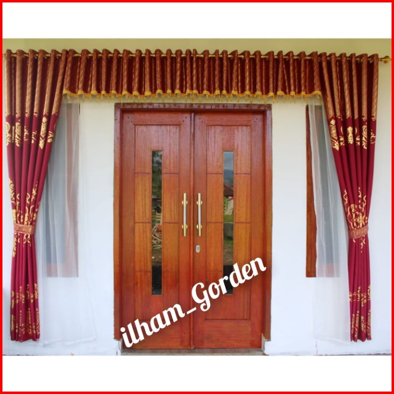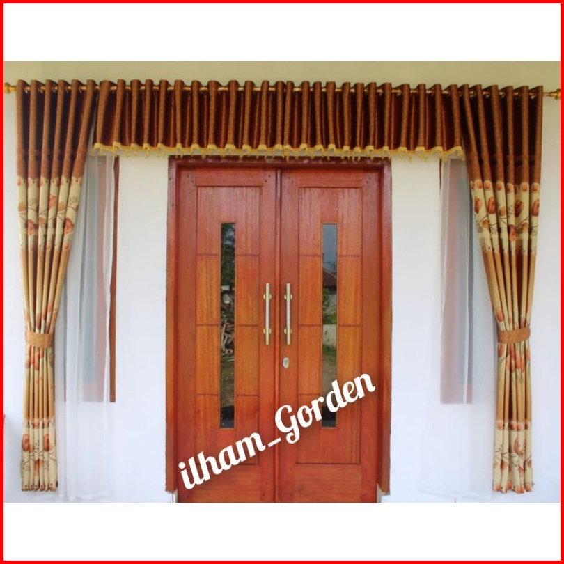 Gorden Pintu Utama Depan Satu Set Bahan Bleckout Bludru Motif Print