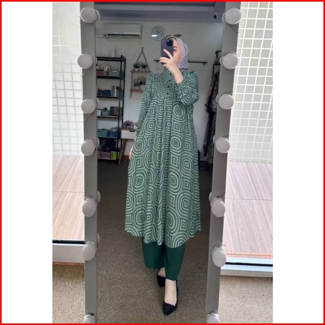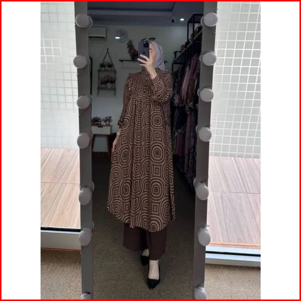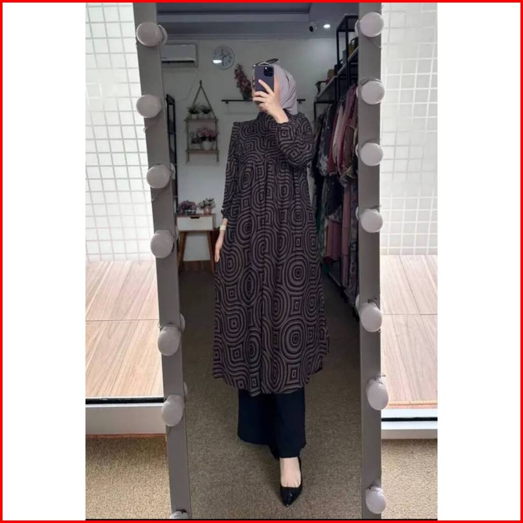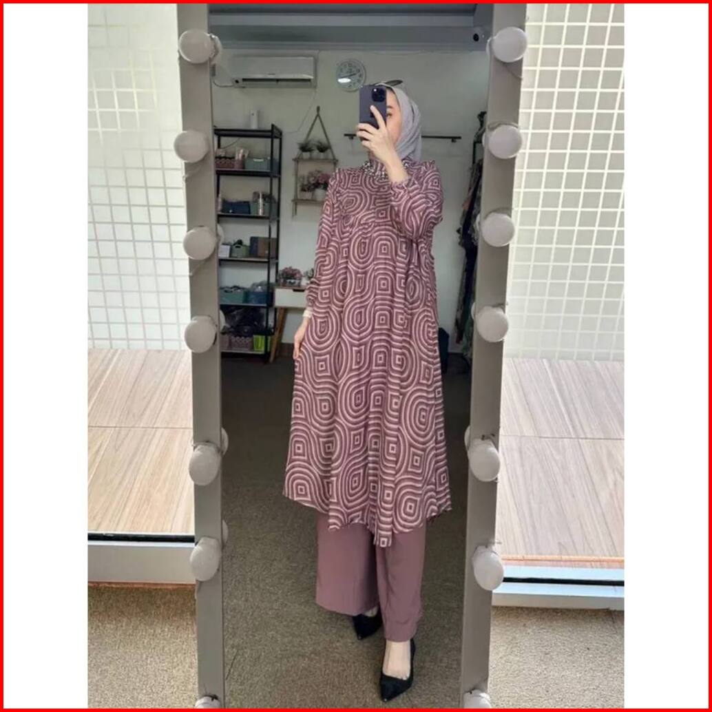 Setelan Tunik Long Bussui One Set Tunik Rayon Premium Celana Kulot Crinkle Airflow