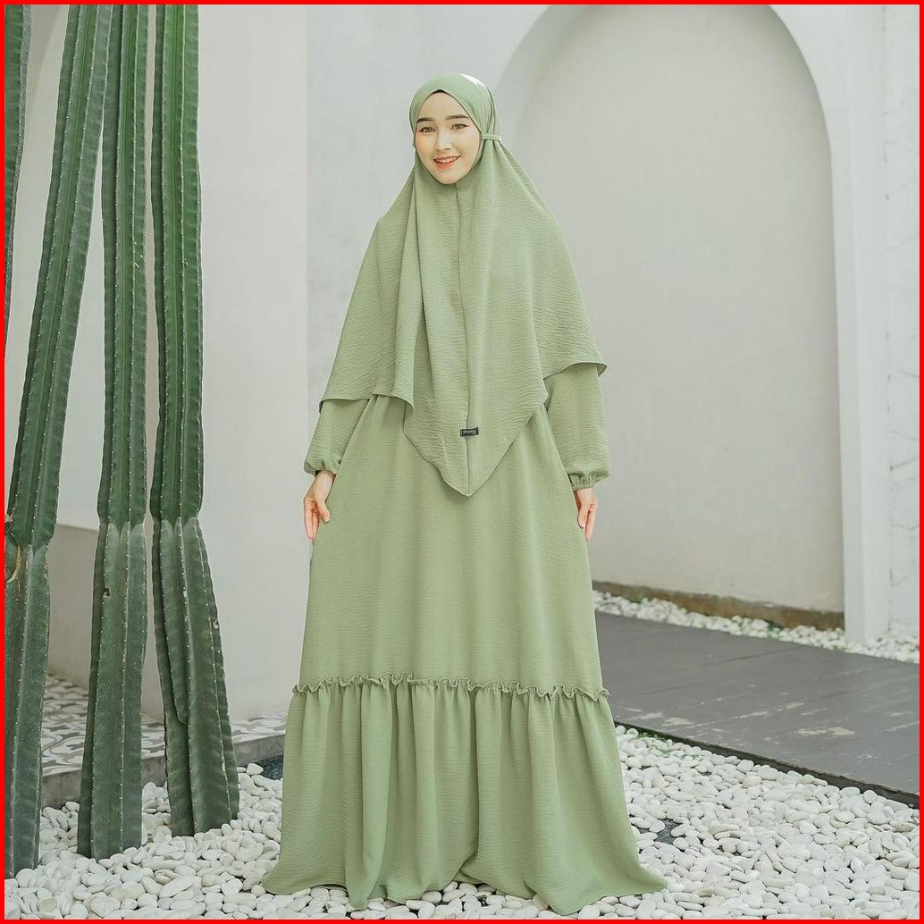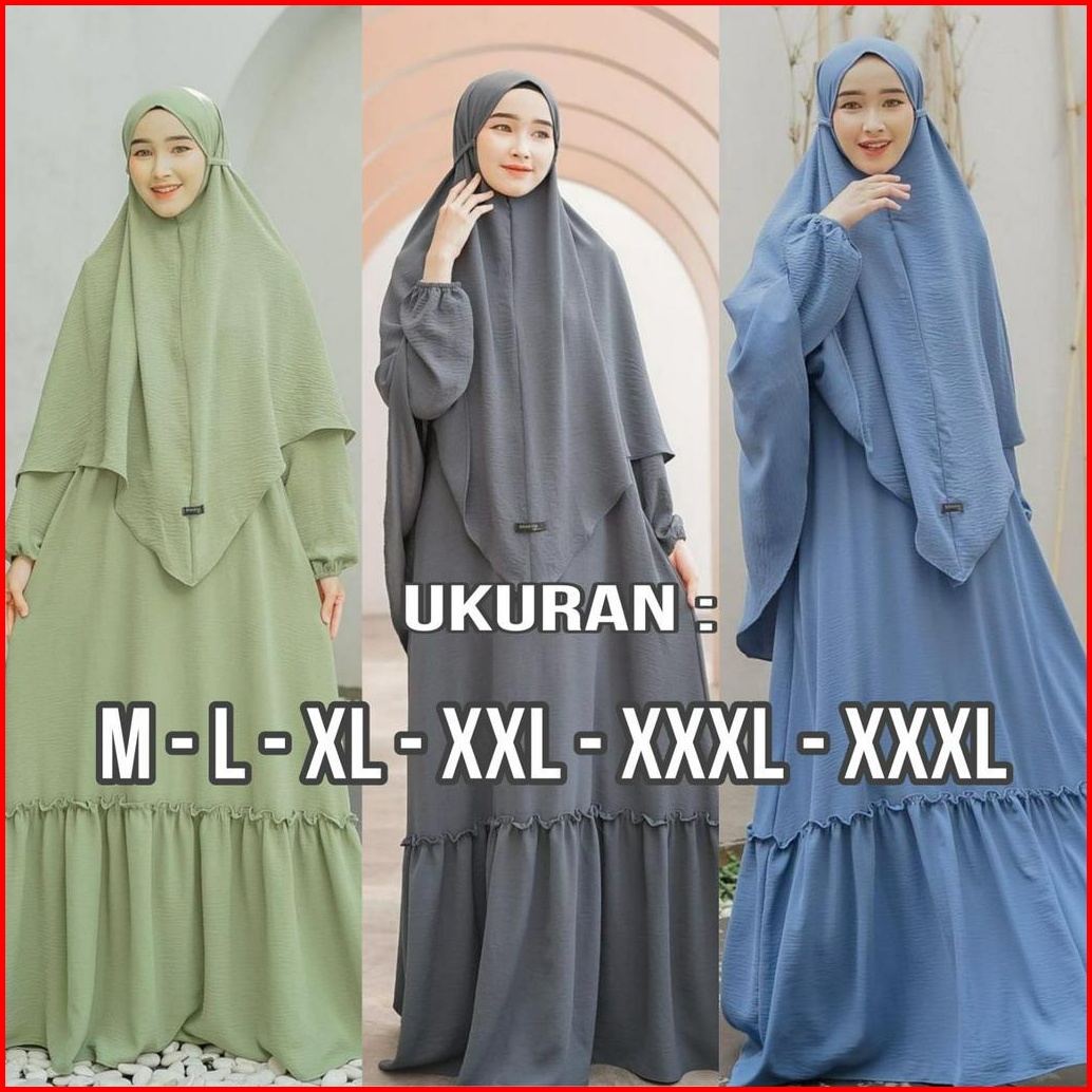 Gamis Cringkel Syakira Syar I Set Hijab Busui Resleting Depan Baju Muslimah Terlaris Gamis Jumbo Ukuran M L Xl Xxl Xxxl