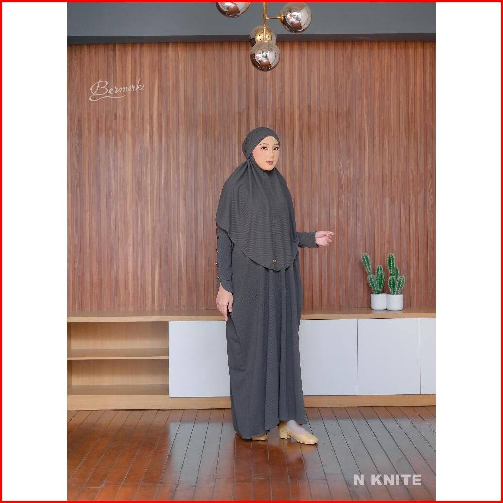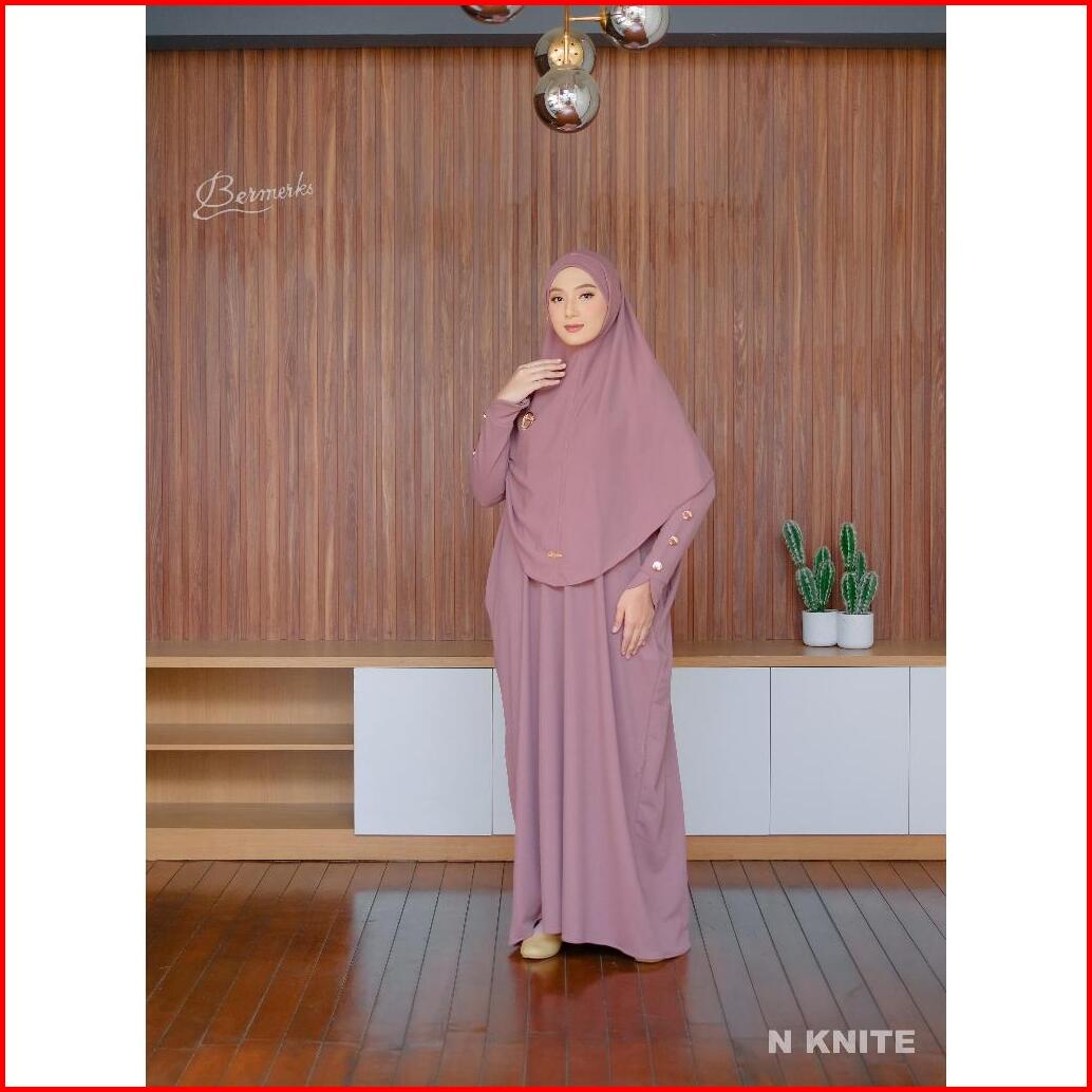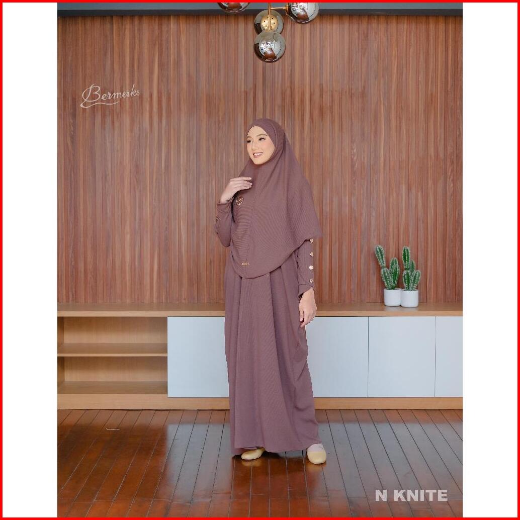N Knite Gamis Set Hijab Ori By Bermerks Syar I Bahan Knit Premium Kancing All Size
