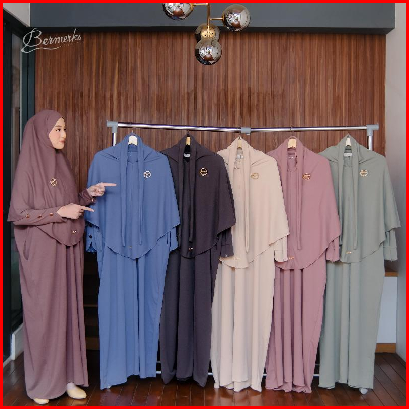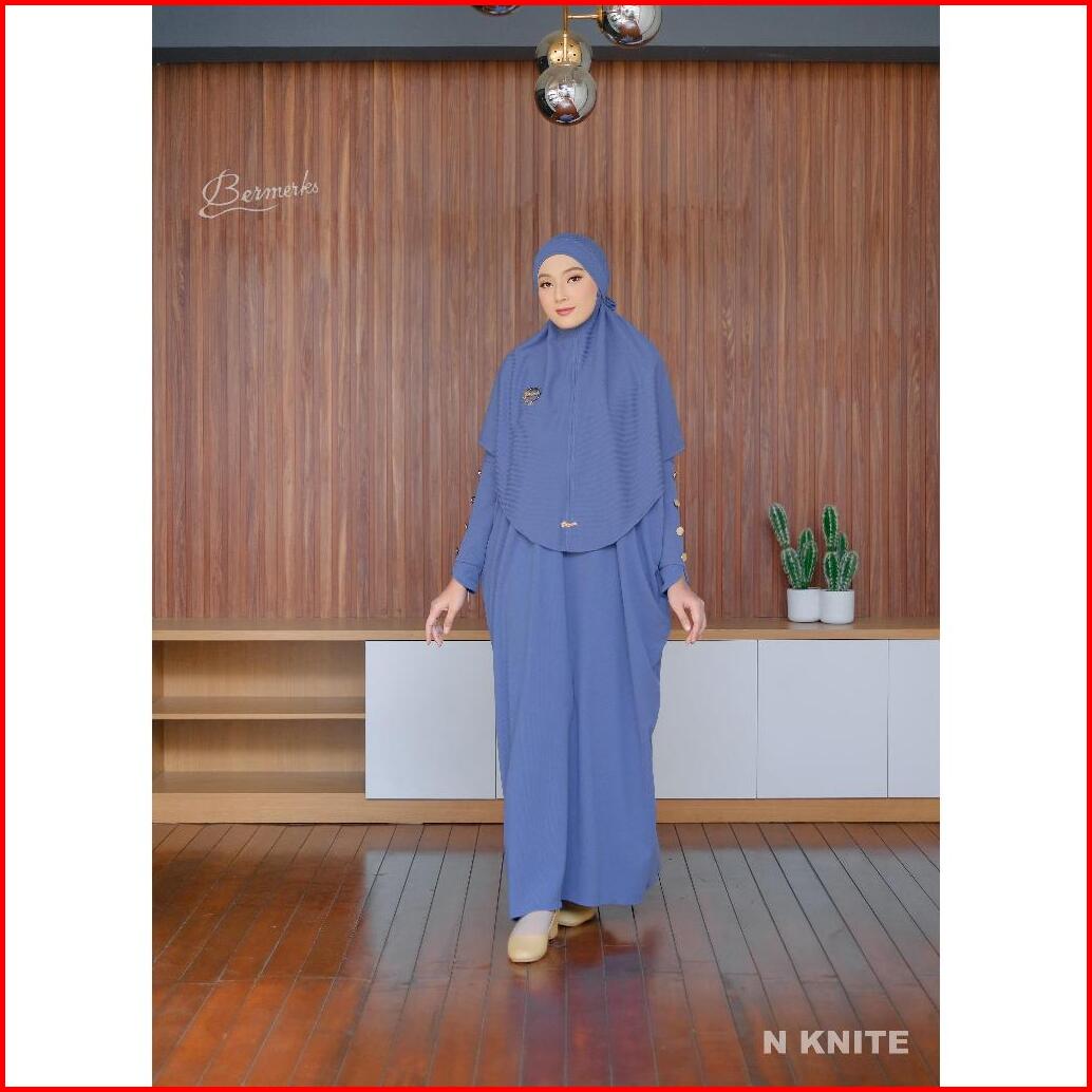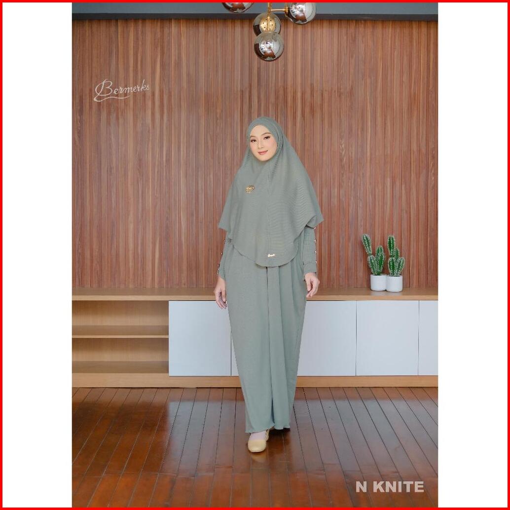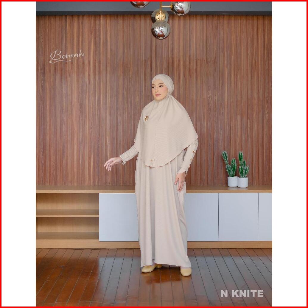 N Knite Gamis Set Hijab Ori By Bermerks Syar I Bahan Knit Premium Kancing All Size