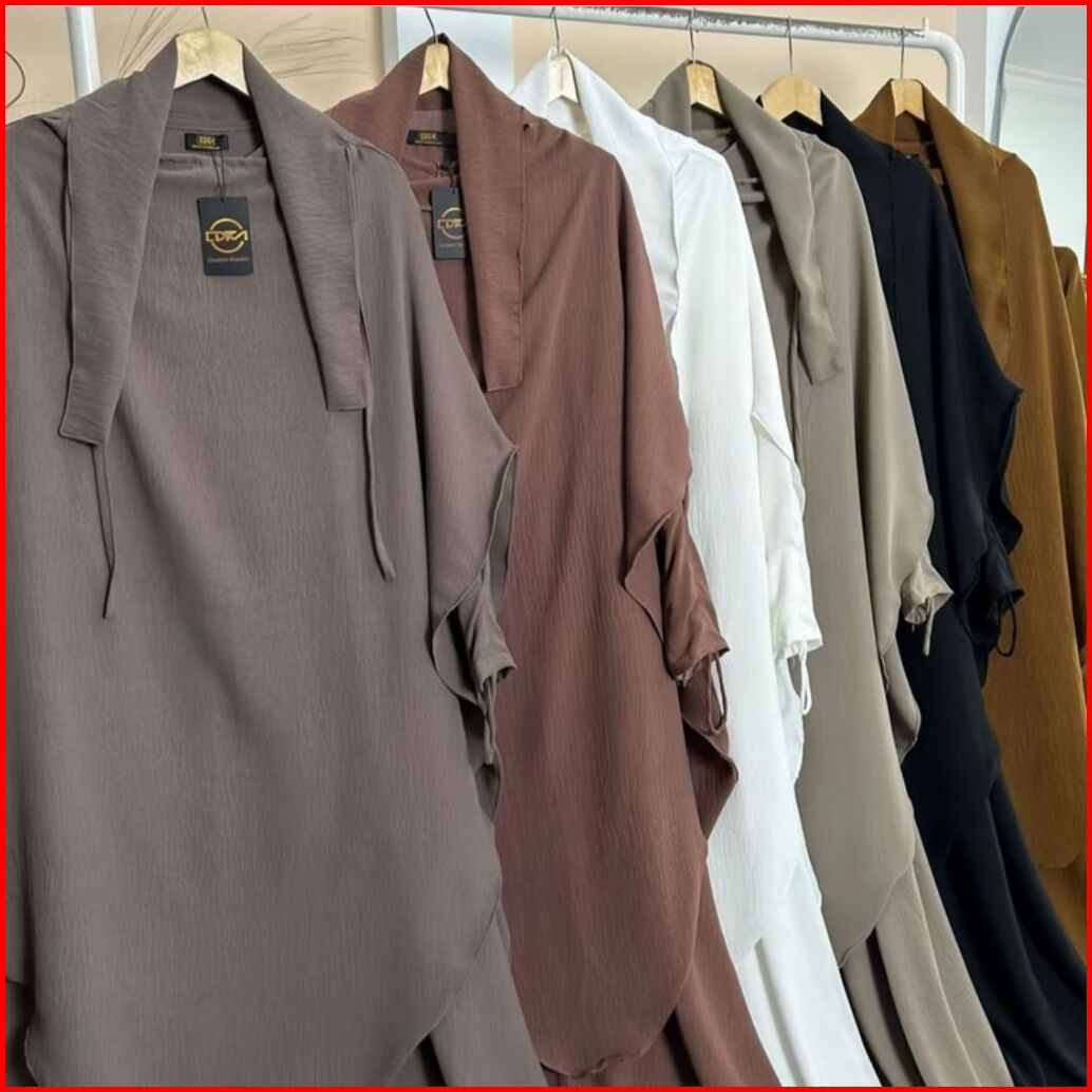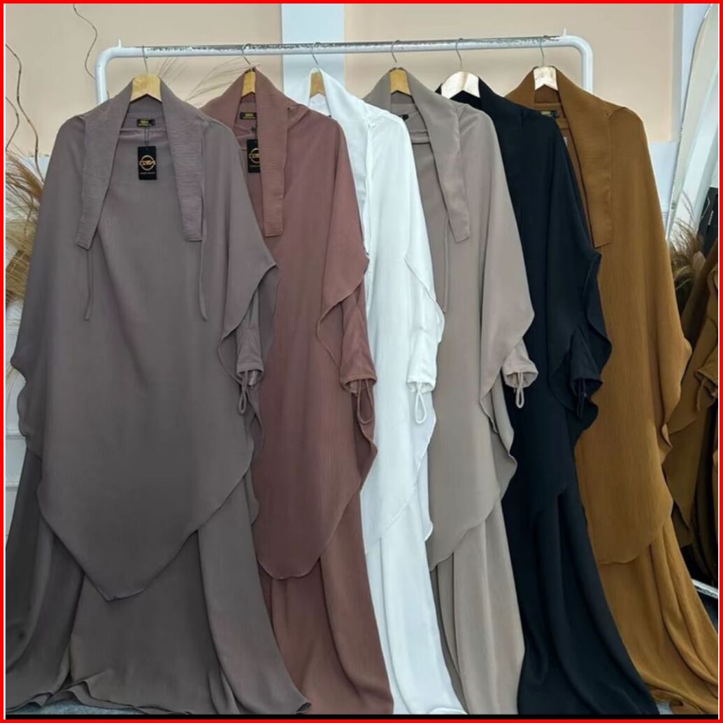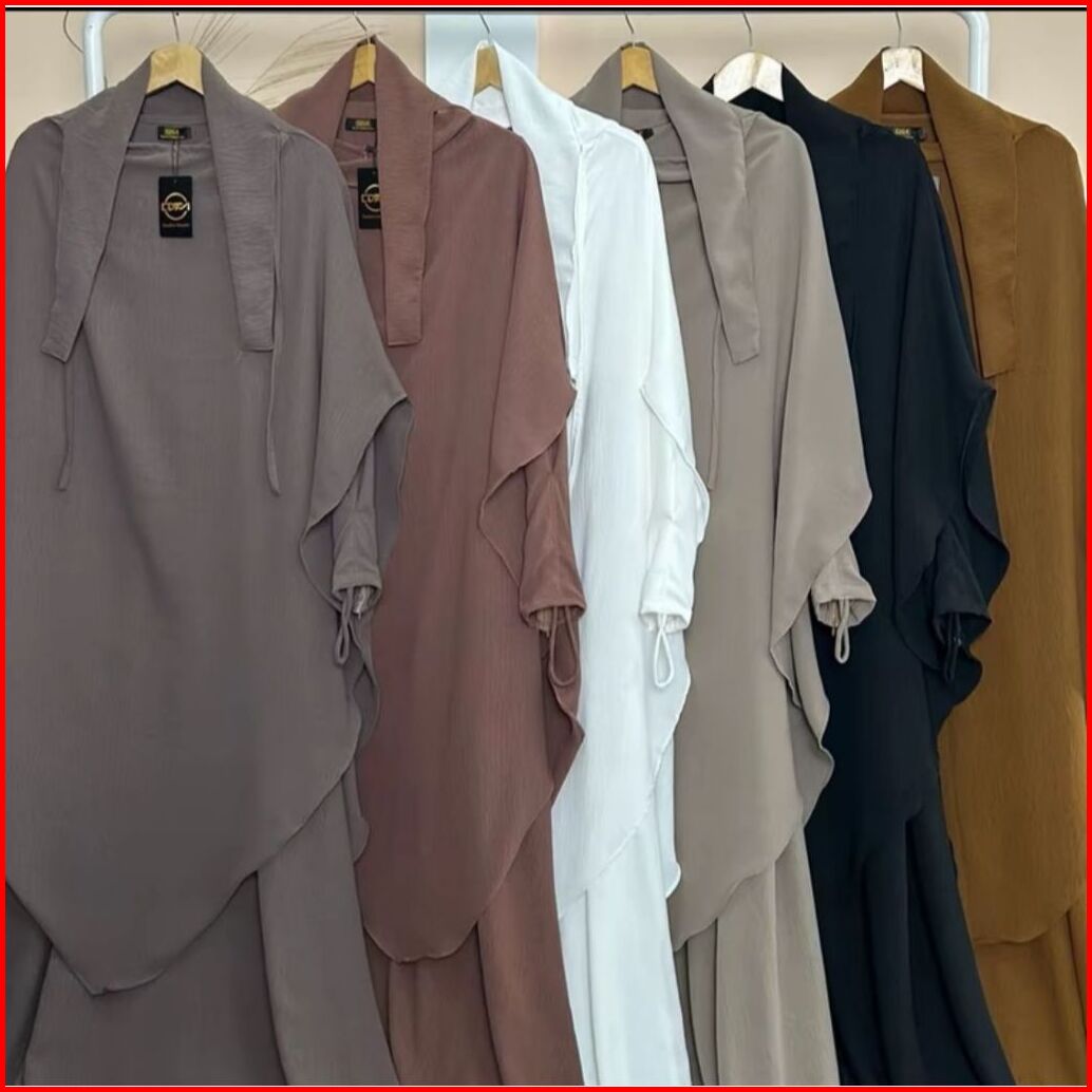 Marwah Abaya Syari Set French Khimar Gamis Syari Wanita Terbaru Crinkle