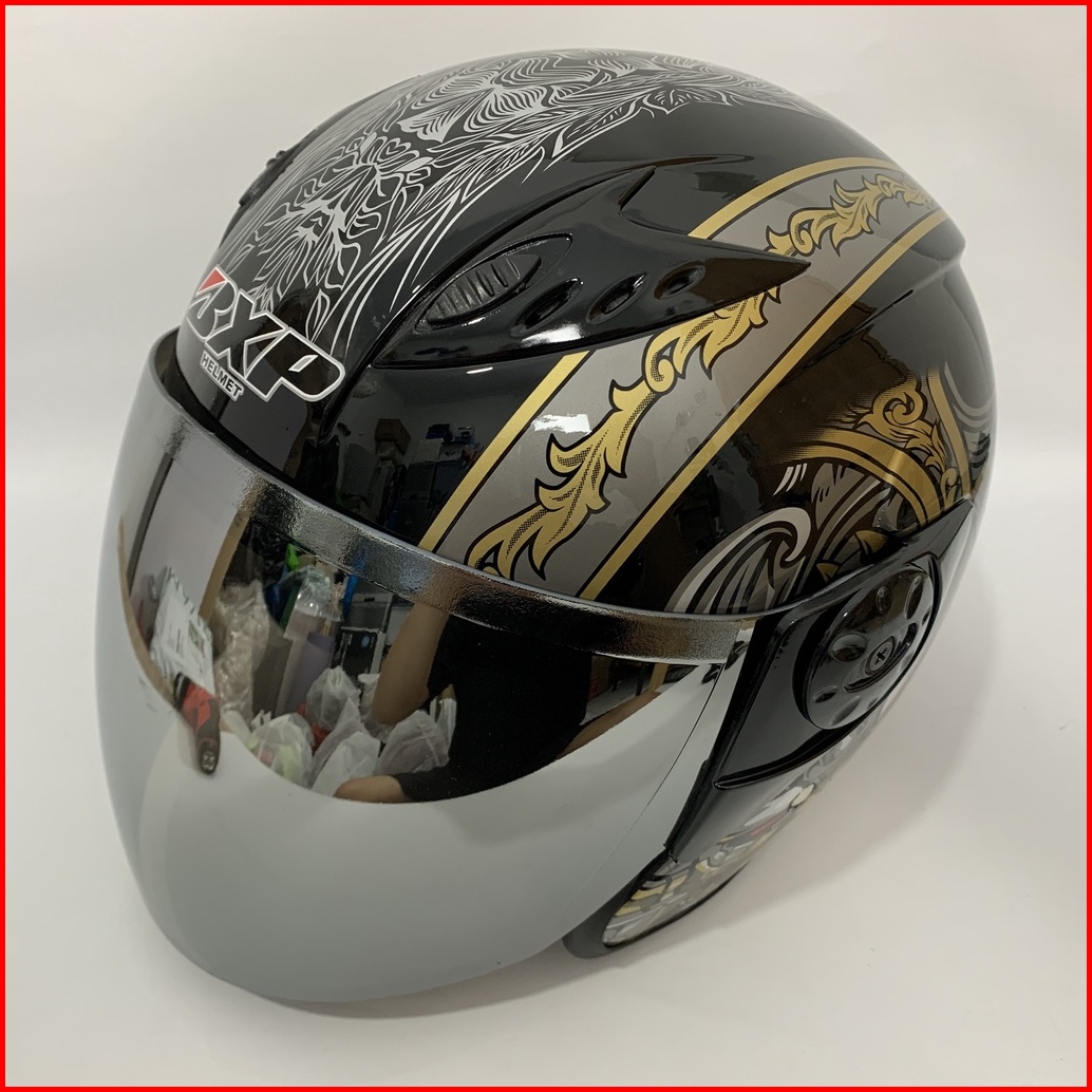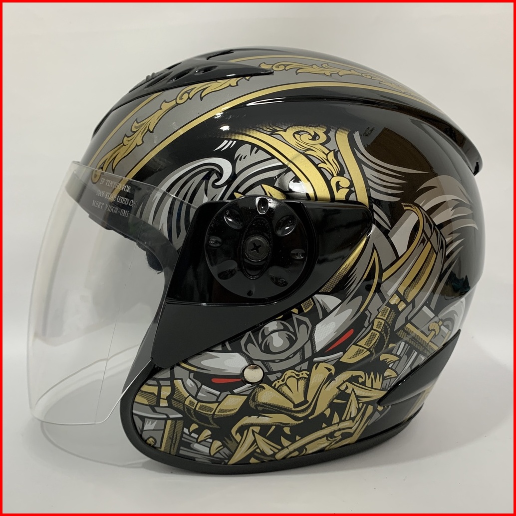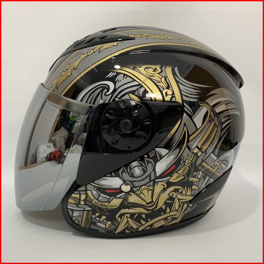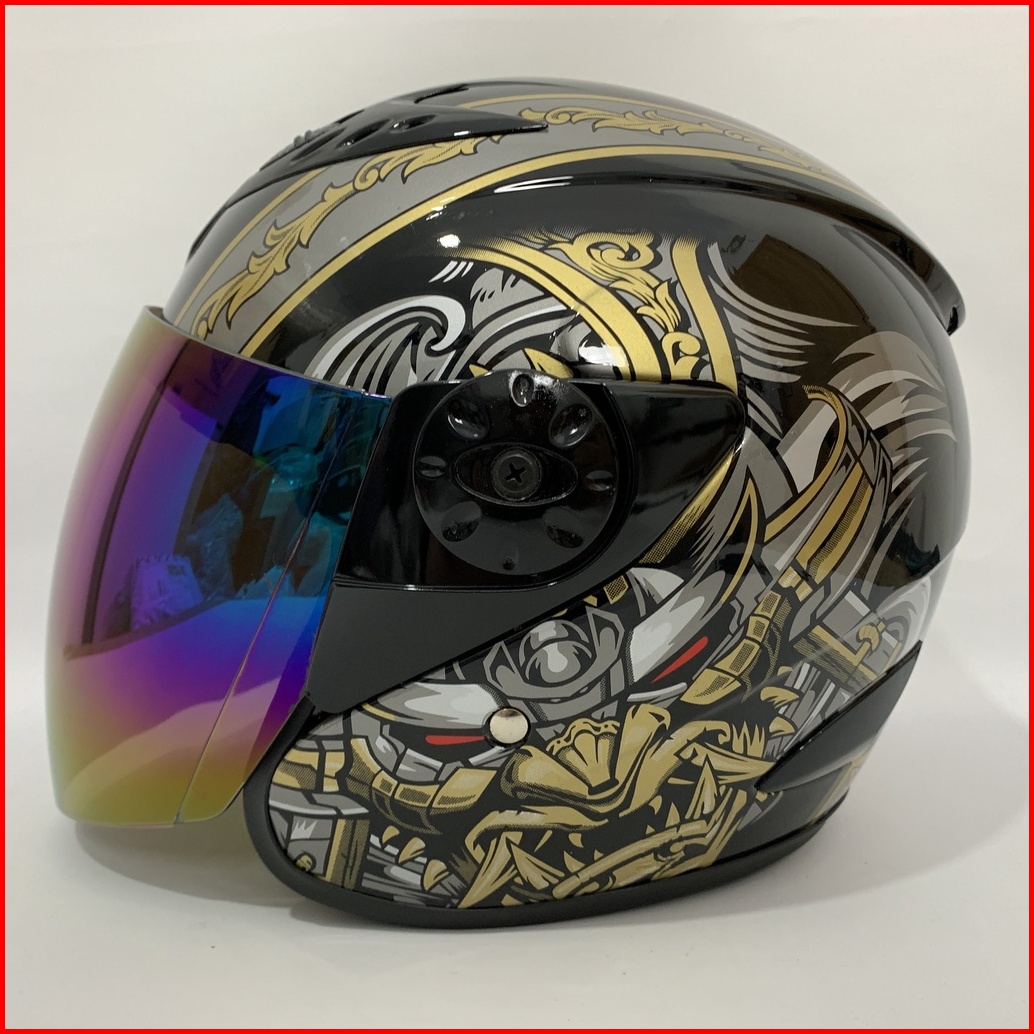Helm Vision Samurai Hitam Glossy - Kaca Iridium Silver Pelangi Rainbow Helem Helmet Bxp