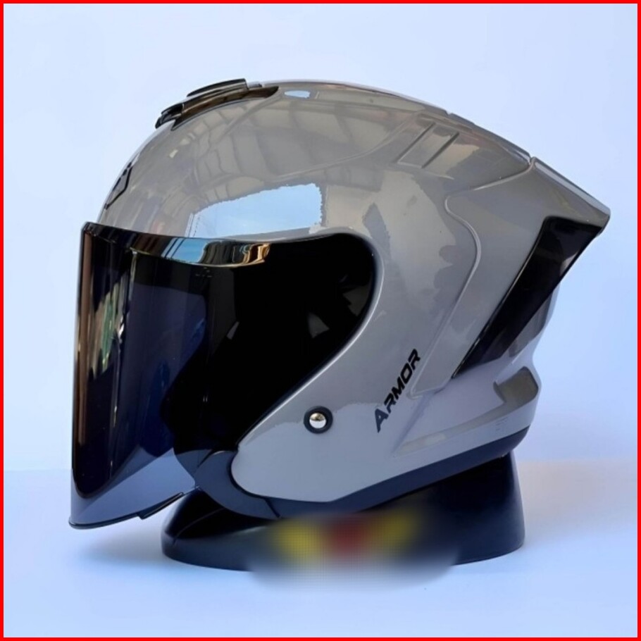 Js Armor Helm Half Face Paket Ganteng Spoiler 3d Sni - Stone Grey Glossy
