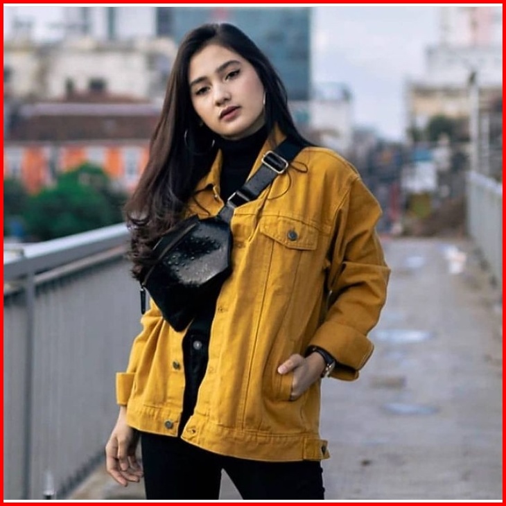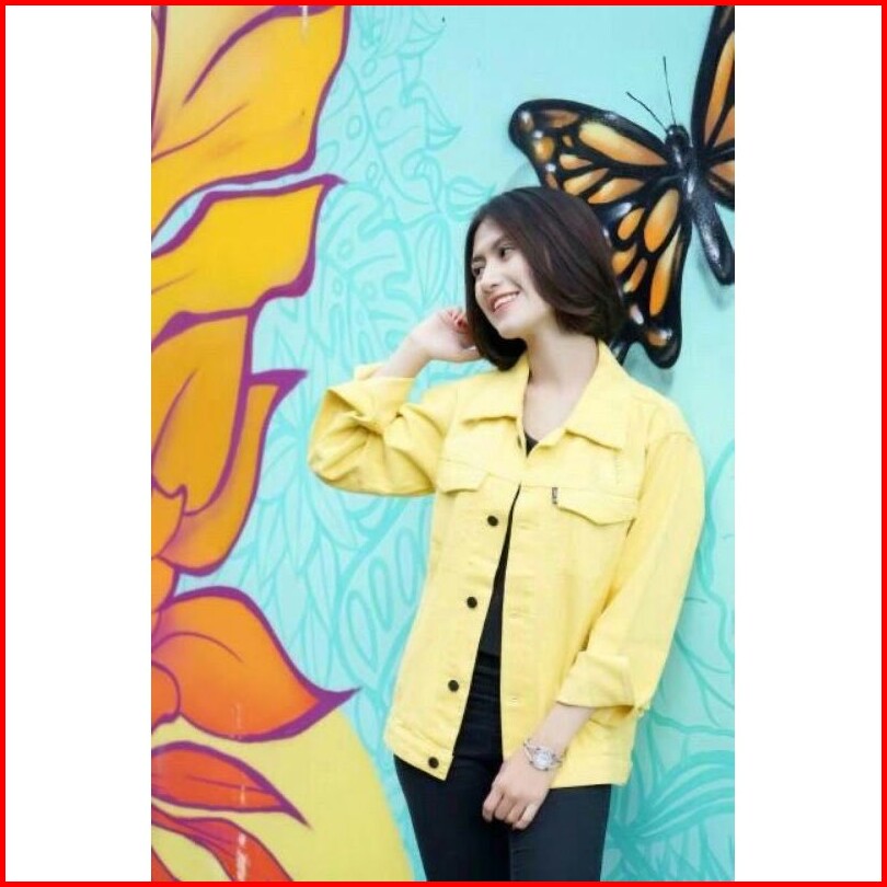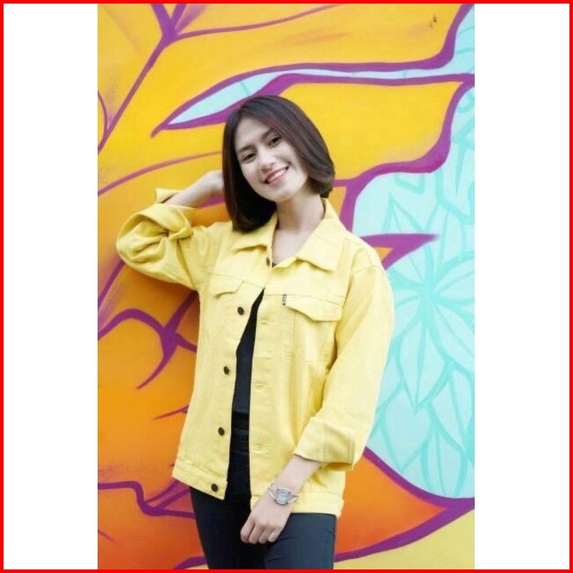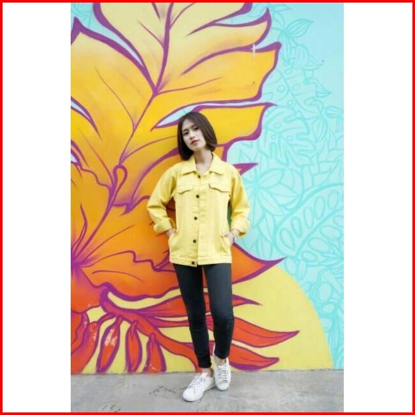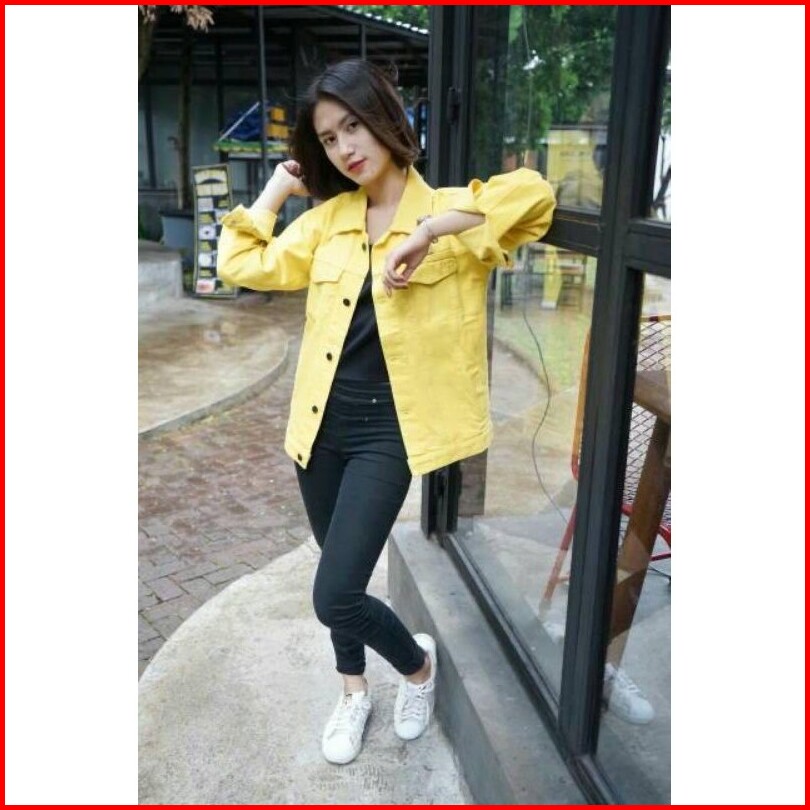 Jaket Jeans Denim Oversize Wanita - Kuning Lemon