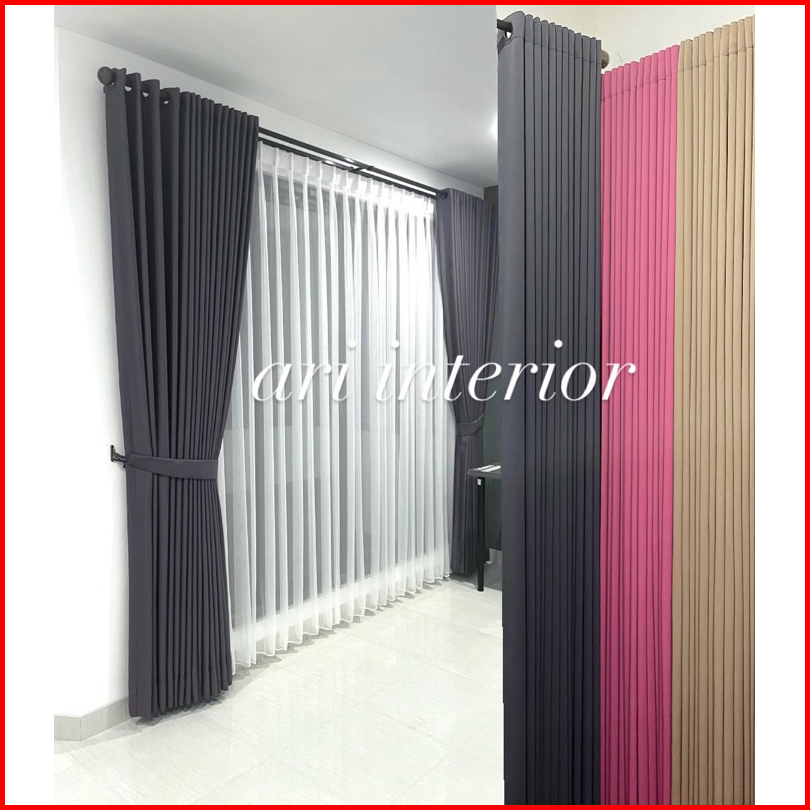 Gorden 6 Gelombang Gorden Blackout Depan Belakang Dof Abu Tua Polos
